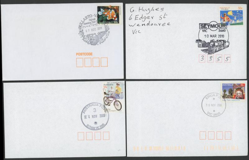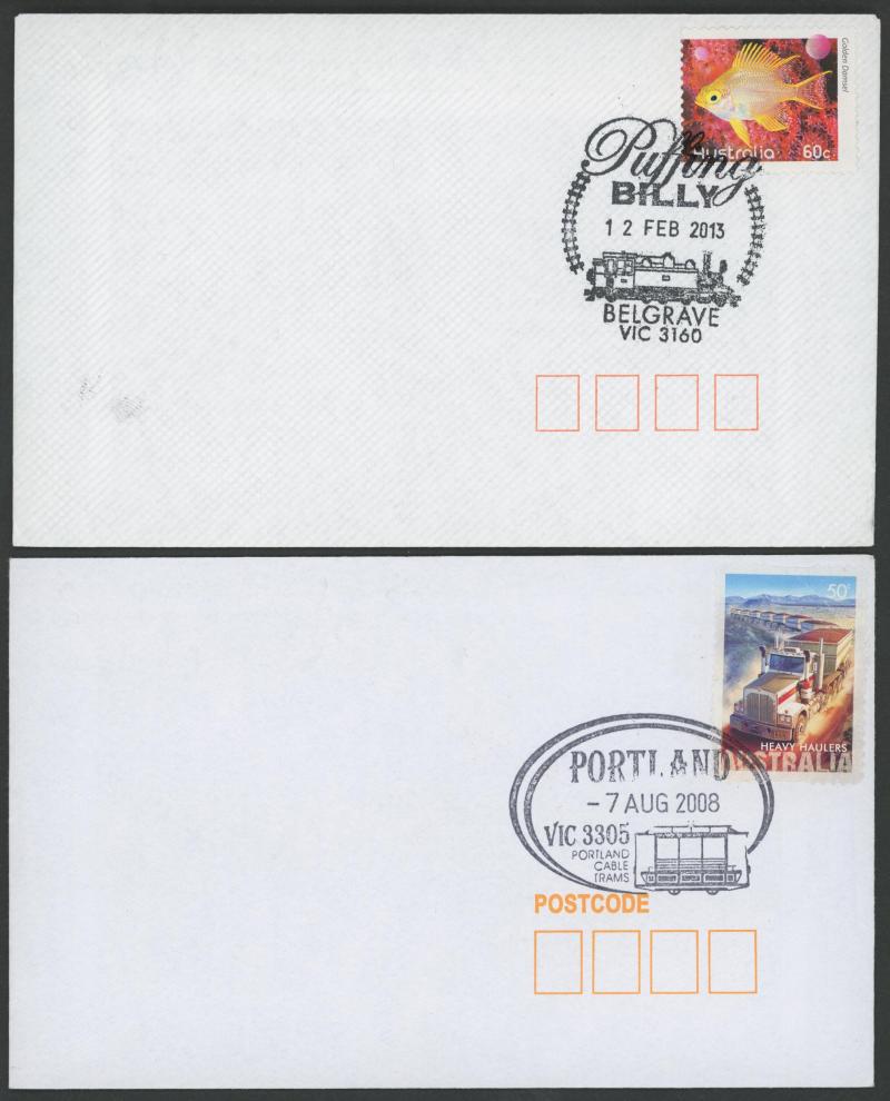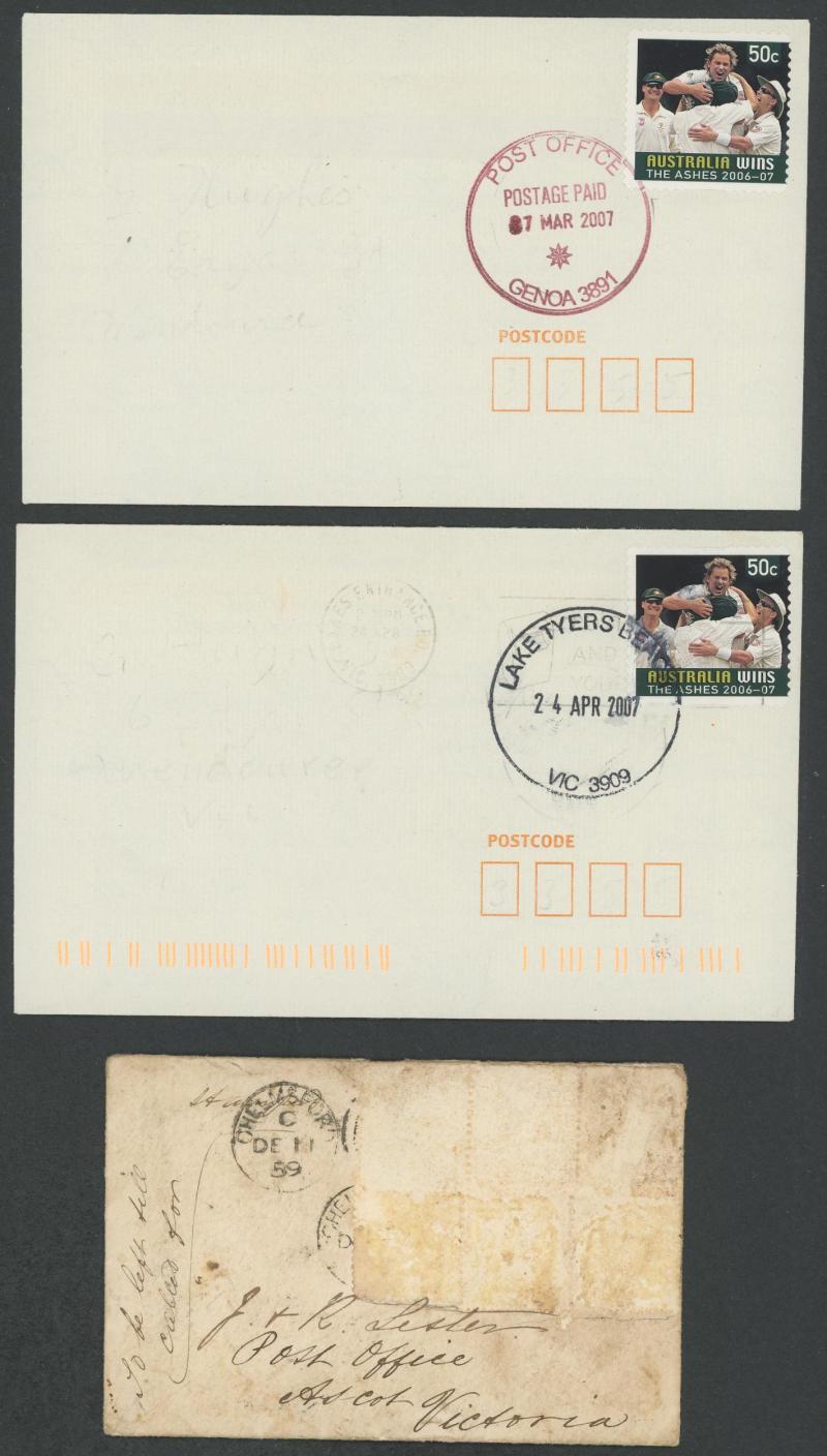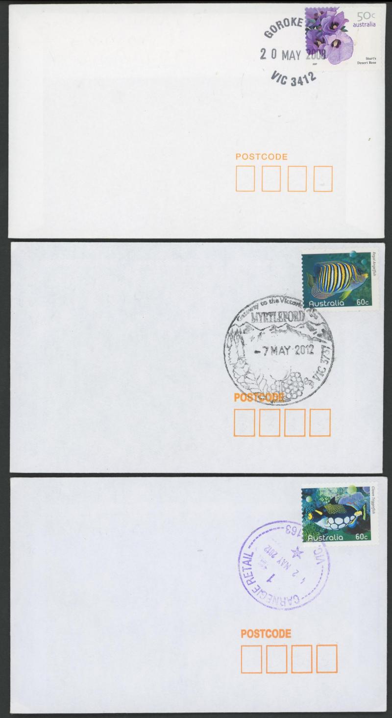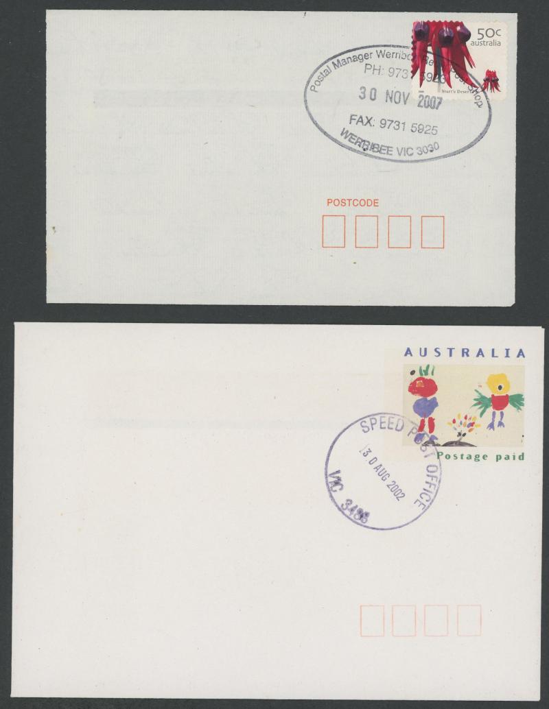 'WARNCOORT/VIC' (ERD), 'WEDDERBURN JCTN', 'WEEWEERUP' (one word; ERD of only two recorded), TPOs Commonwealth- Period types including 'TPO 3/DOWN...' with arcs (Molnar & Waugh Rated RRRR), 'TPO 4/DOWN...' (RRRR), superb 'TPO 13/DOWN...', 'TPO