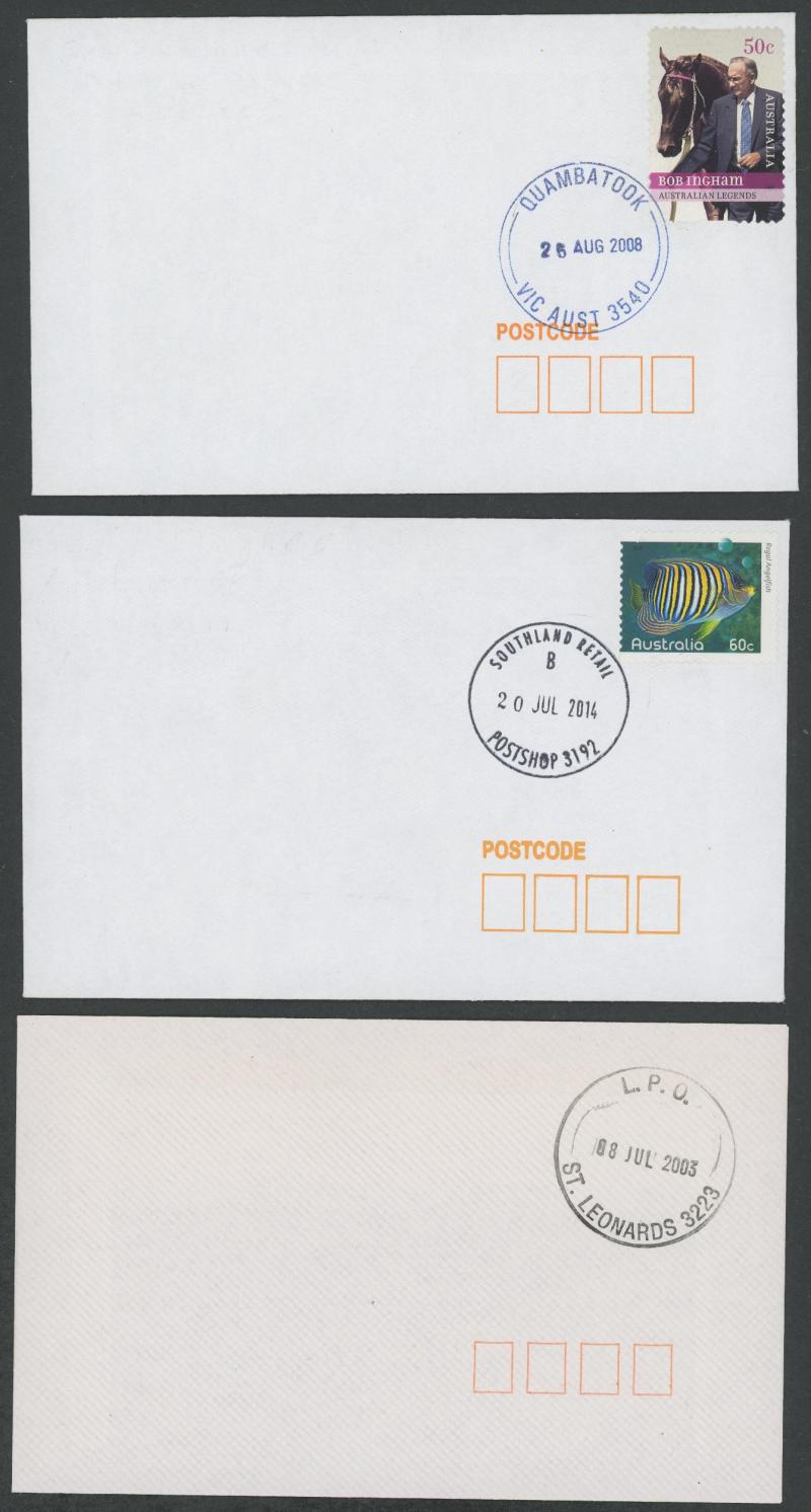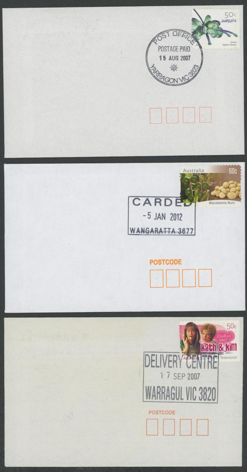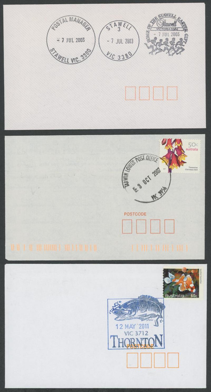 'Armytage [309a]', 1936 'ARUNDEL', 'AUST JAMBOREE FRANKSTON', 1939 triple-oval 'BENDIGO/VICTORIA', 'BERROOK' (rated RRRR), 'BORLANDS', 'BURLINGTON', 1943 'CARNEGIE SOUTH SE9' (not previously recorded), 1934 'CATHCART', 1922 'MILITARY HOSPITAL