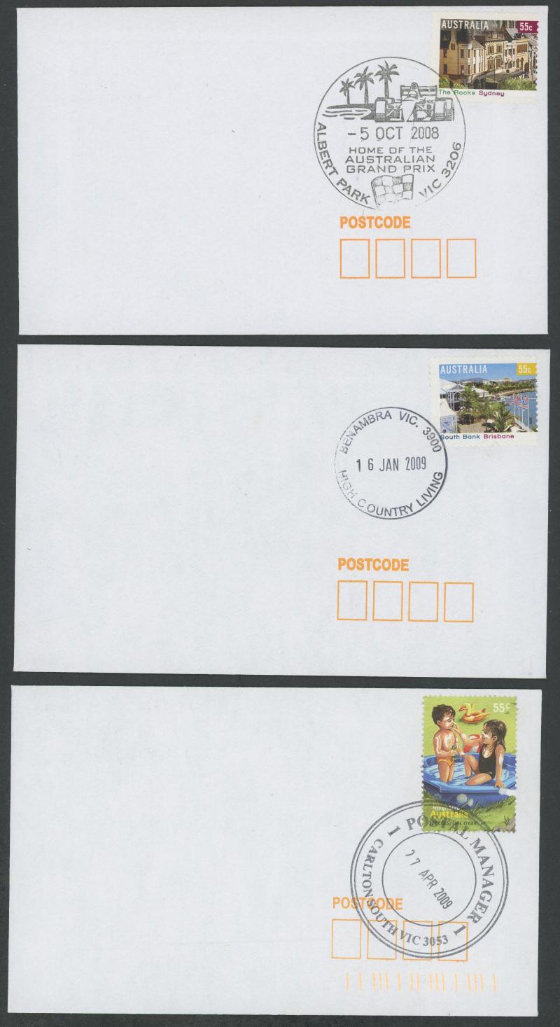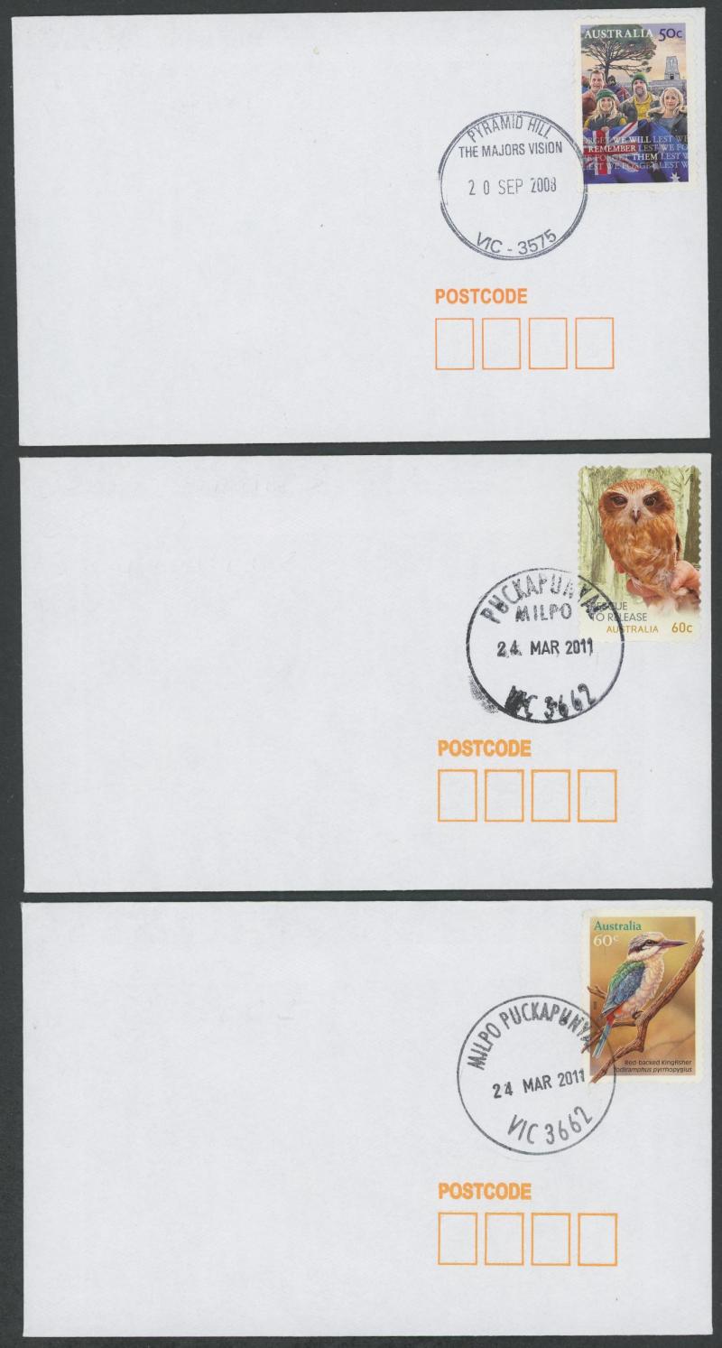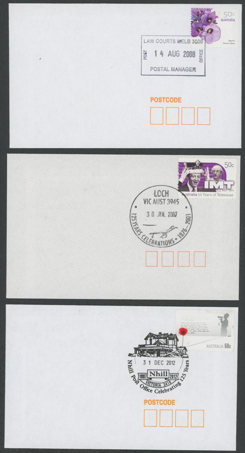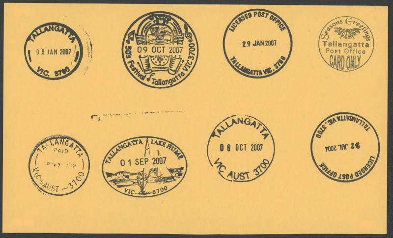 'Armytage [309a]', 1936 'ARUNDEL', 'AUST JAMBOREE FRANKSTON', 1939 triple-oval 'BENDIGO/VICTORIA', 'BERROOK' (rated RRRR), 'BORLANDS', 'BURLINGTON', 1943 'CARNEGIE SOUTH SE9' (not previously recorded), 1934 'CATHCART', 1922 'MILITARY HOSPITAL