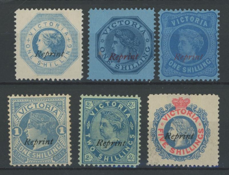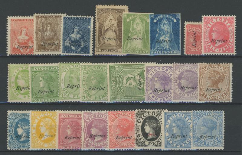 REPRINTS: Selection of 'Reprint' Overprints including Half-Lengths trio, Queen-on-Throne trio, other Classics to 1/-, Laureates to