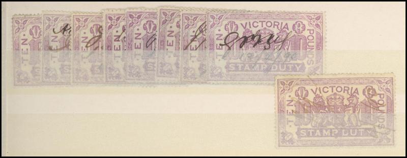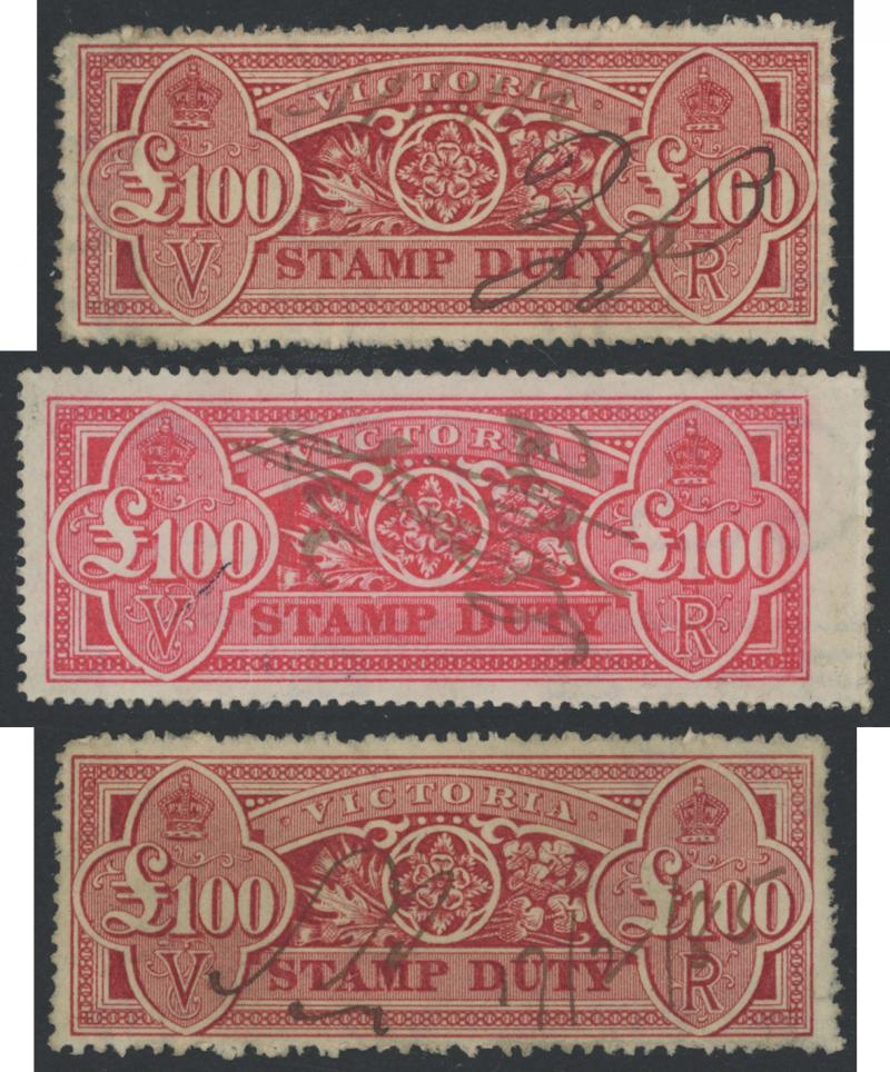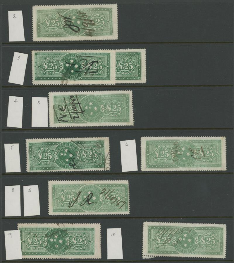 REVENUES: 1884-1900 Ultra-High Values £25 x11, £50 x4 and £100 x4 (one with 'CTORIA' Sheet Watermark) from various printings with a