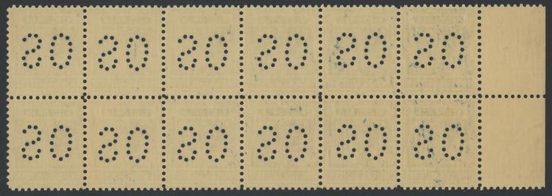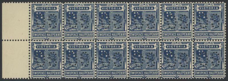 1905-13 QV 'POSTAGE' Crown/A Wmk Perf 11 2½d indigo SG 436a punctured 'OS' ACSC V78Bb marginal block of 12 (6x2) from the left of