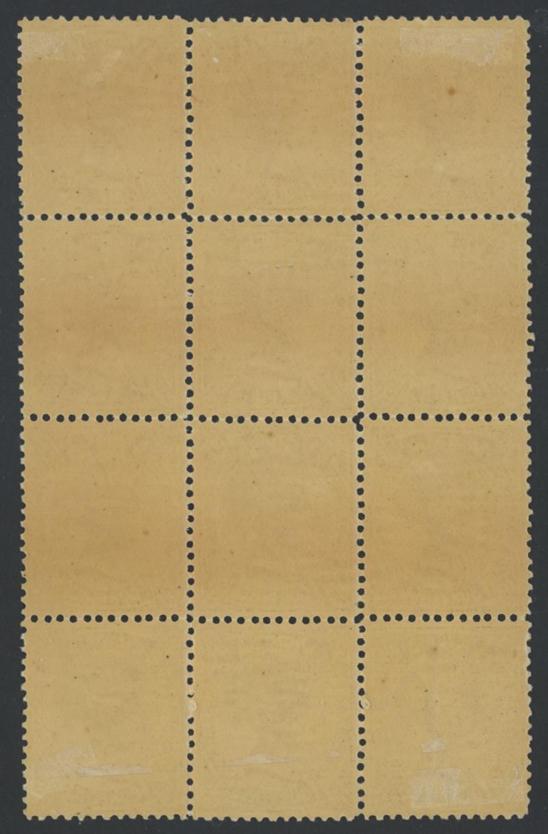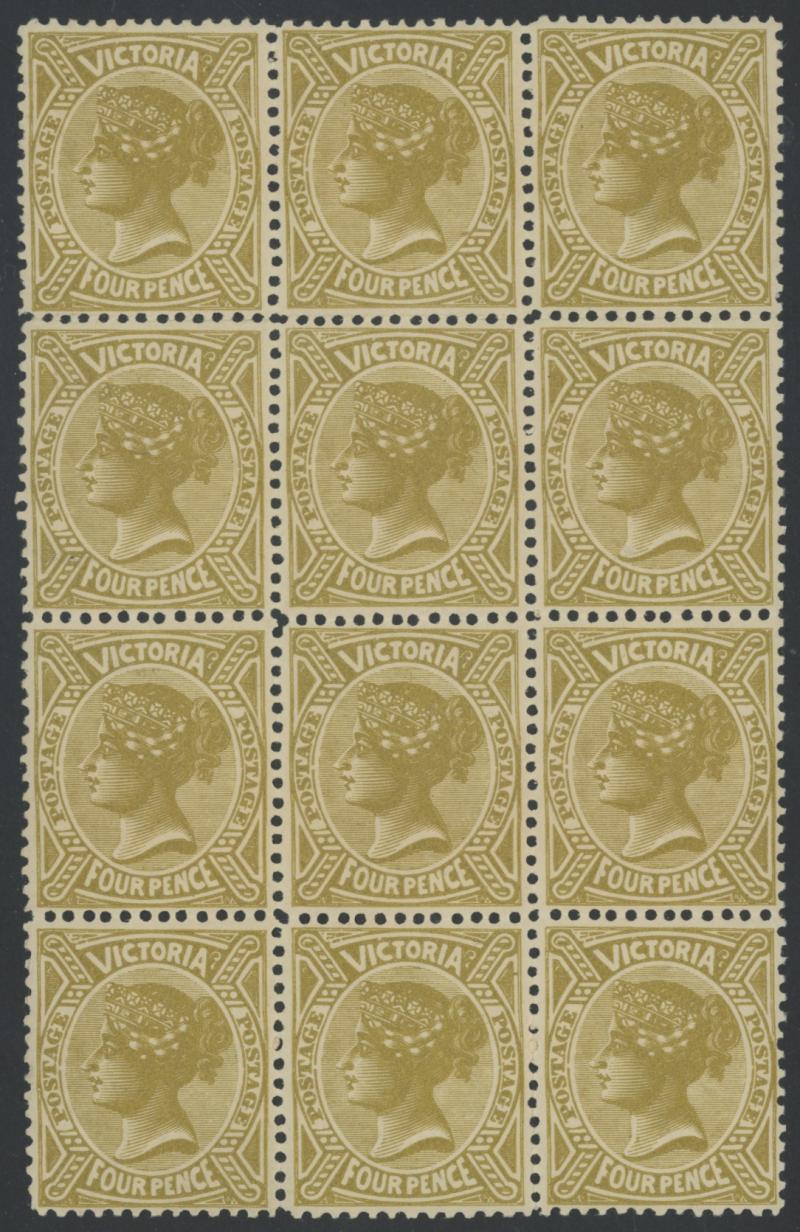 1905-13 QV 'POSTAGE' Crown/A Wmk Perf 12½ 4d yellow-olive SG 421b (ACSC V91C) block of 12 (3x4), excellent centring, characteristic