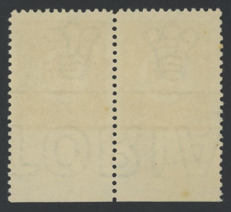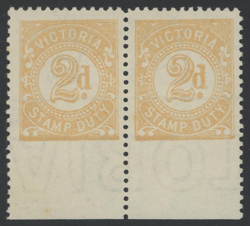 REVENUES: 1957 Stamp Duty Numerals 2d buff on white Perf 11 horizontal pair from the base of the sheet Imperforate at the Base,