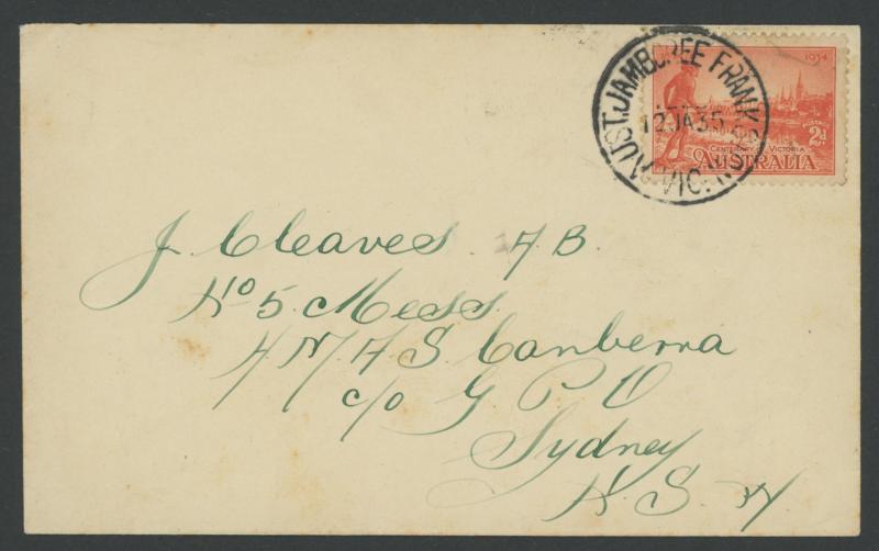 Australian Jamboree Frankston: 'AUST.JAMBOREE FRANKSTON/12JA35/VIC.' cds (without time; arcs 1,1½; last day of use) largely very