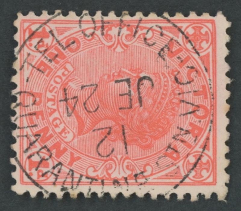 Quarantine Station: 'TEL OFFICE/JE24/12/QUARANTINE STN VIC' (all dateslugs inverted) very fine strike on 1d pink. PO 1.2.1898; RO
