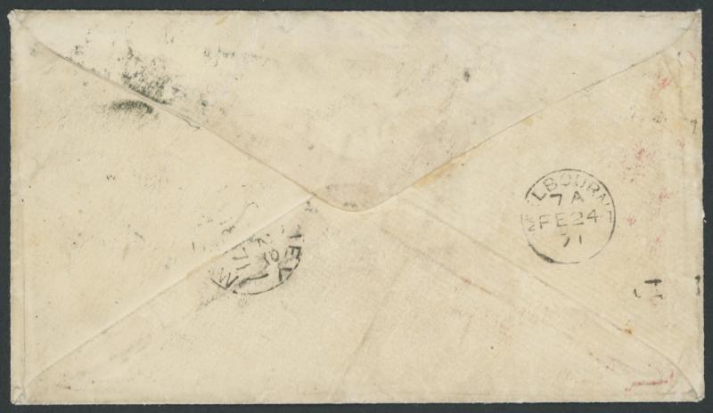 1871 (Jan 15) inwards trans-Pacific envelope from the United States endorsed "Via Honolulu" Hawaii with Large Banknotes 2c Jackson