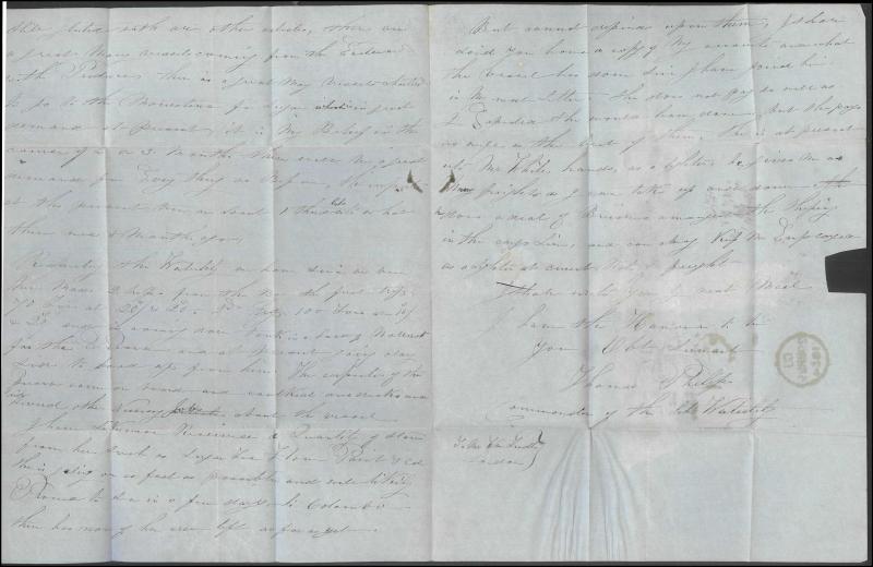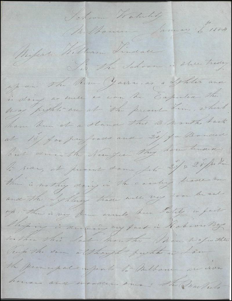 1854 (Jan 6) entire letter headed "Schooner Waterlily, Melbourne" and signed "Thomas Philip, Commander of the Schr Waterlily", to