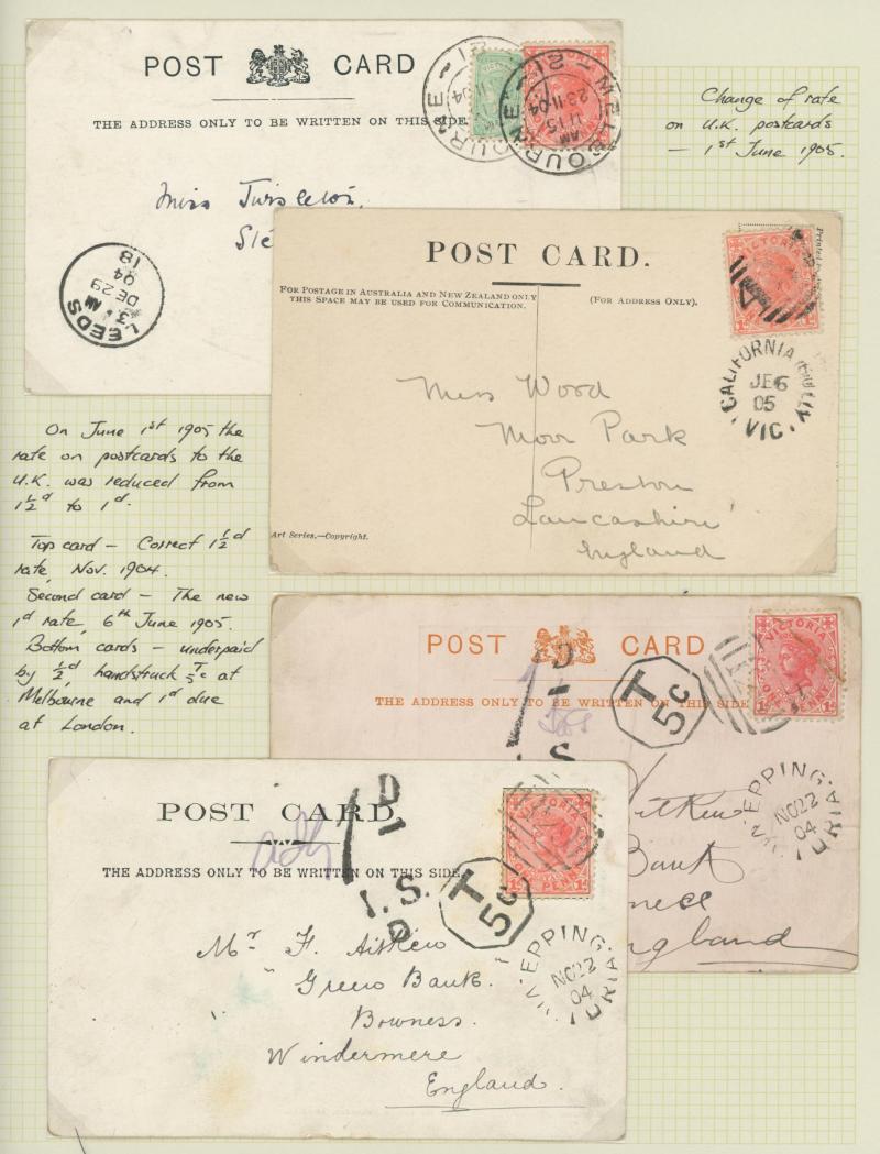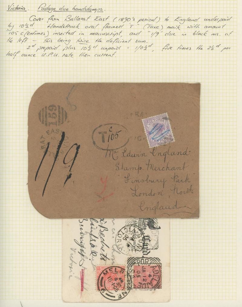 auction of 27.7.2009 for $529 (Sale 148 Lot 1195). An intriguing item. Lamplough is 170km NW of Melbourne, so the original 6d rating (for an inland letter between 21 to 30 miles) was insufficient. From the endorsement at base, it is clear that the