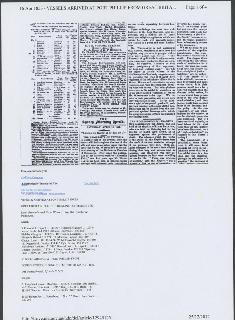 'Aldinga' ex Melbourne 9.1.1864; arriving Port Chalmers 15.1.1864. (Image1) (Image2)