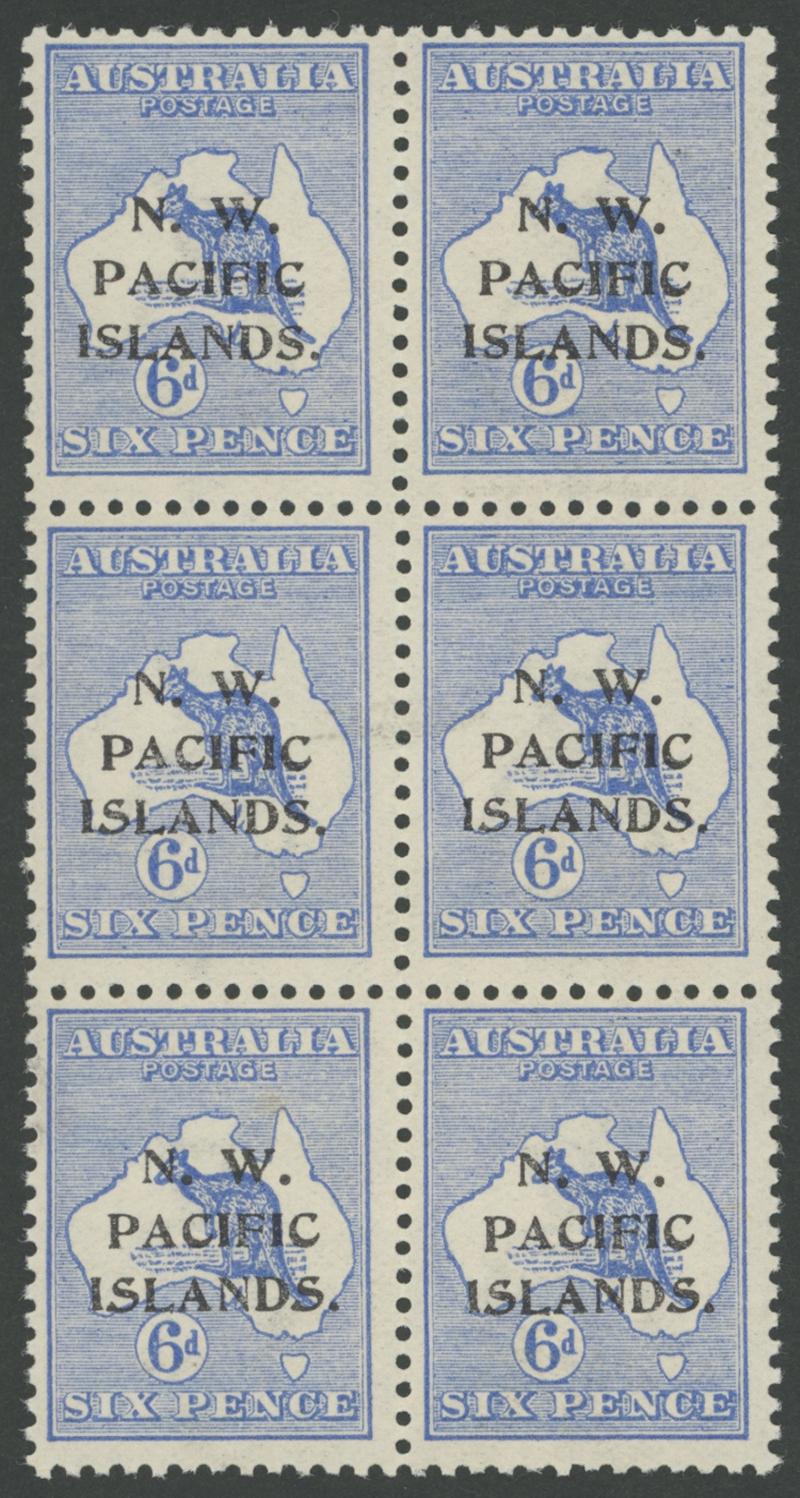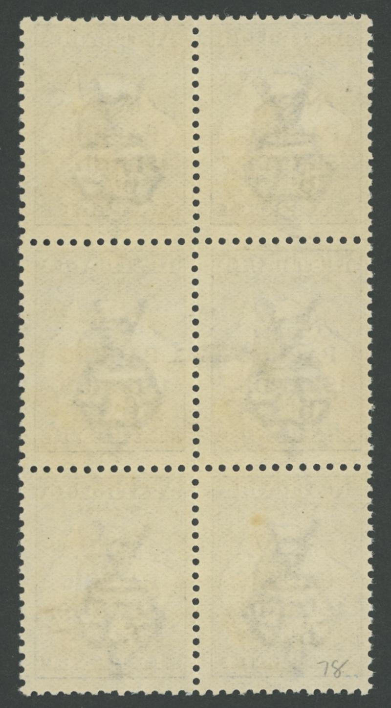 1915-16 on Kangaroos First Watermark 6d ultramarine with the Watermark Inverted SG 78w Fourth Setting Types abc block of 6 (2x3)