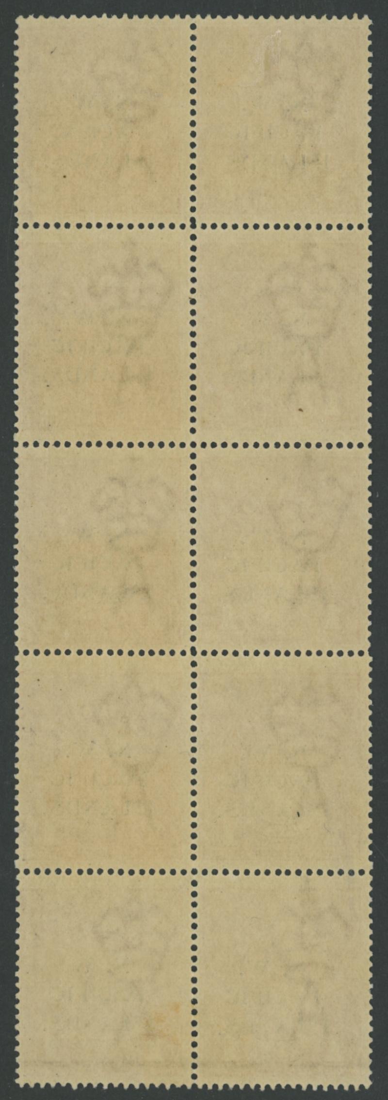comprising two vertical strips of 3, the lower-left unit with a small aging mark on the gum otherwise very fine unmounted, Cat £2600+ for two mounted abc strips. Very scarce. (Image1) (Image2)