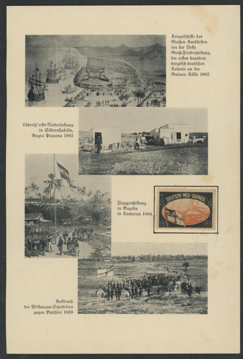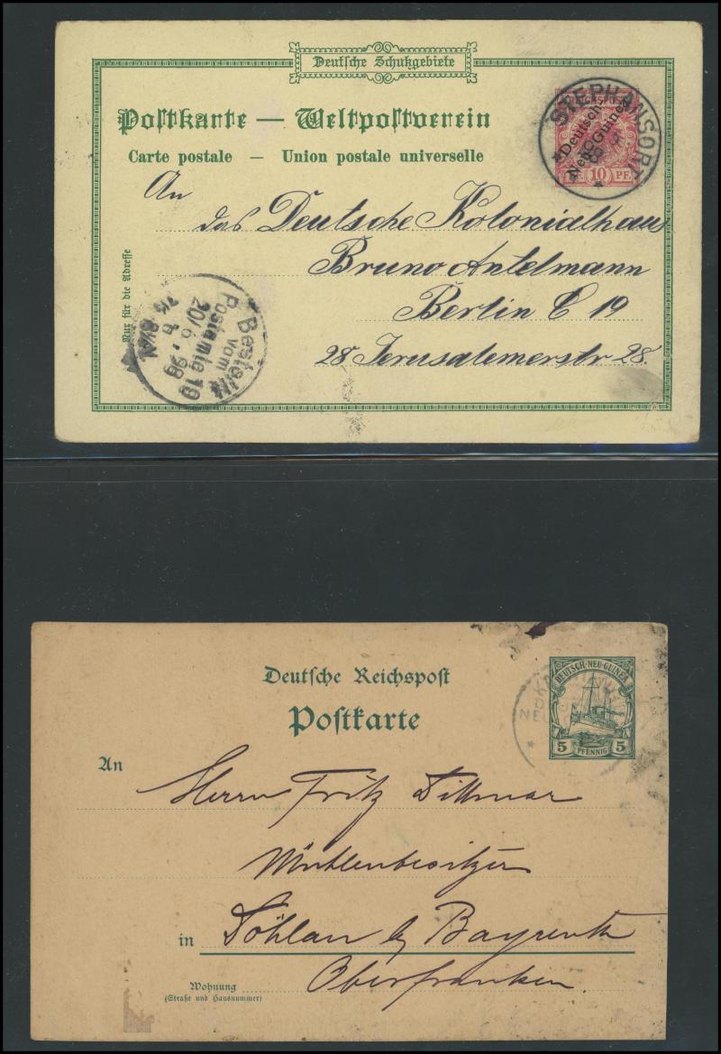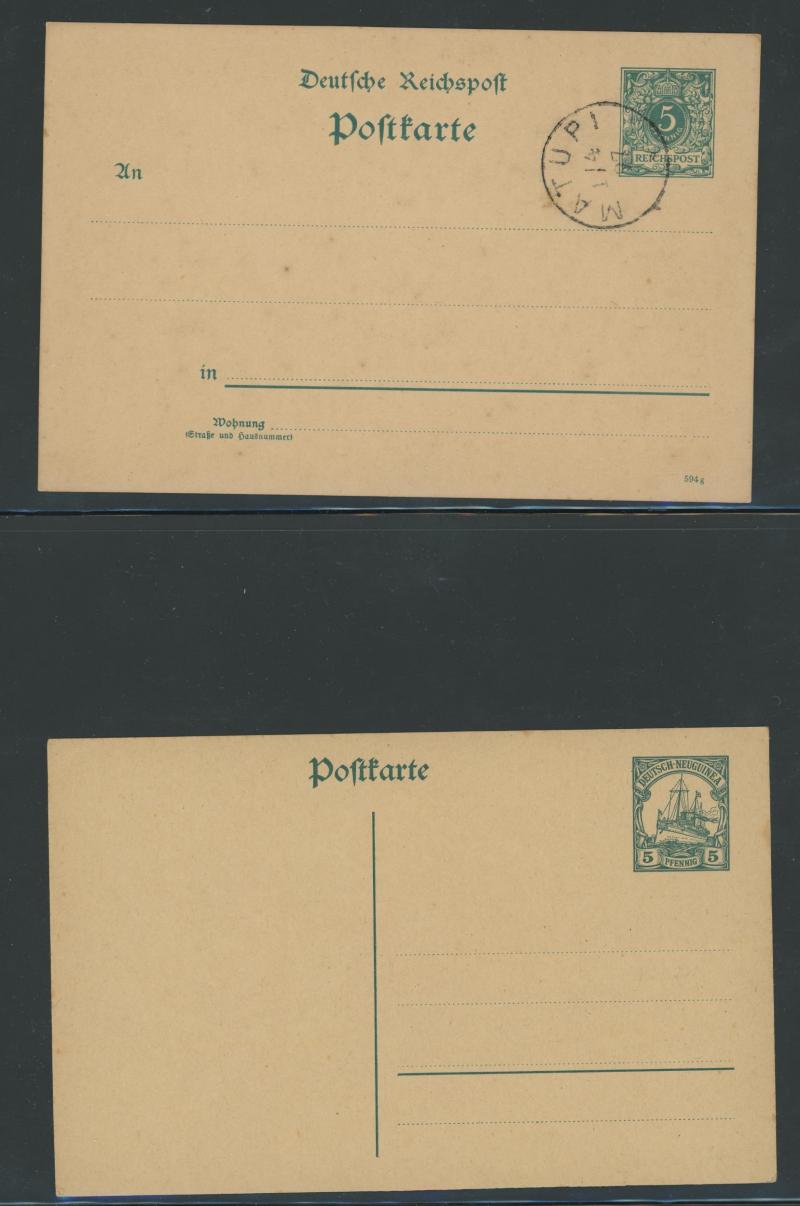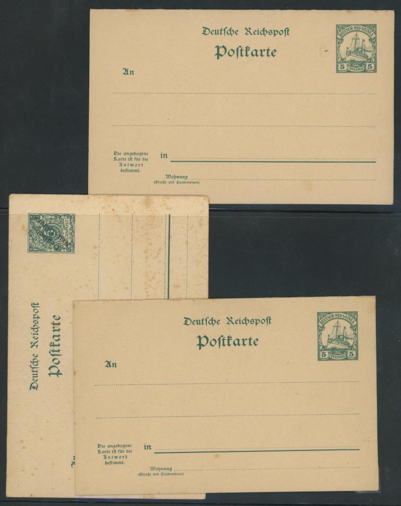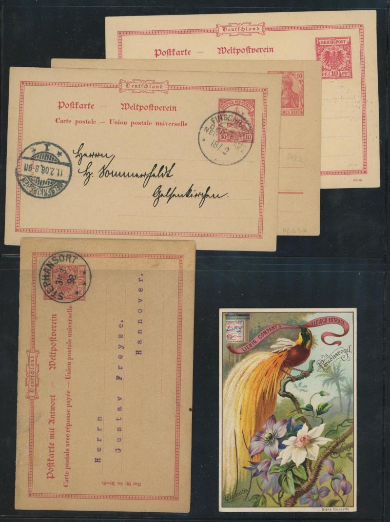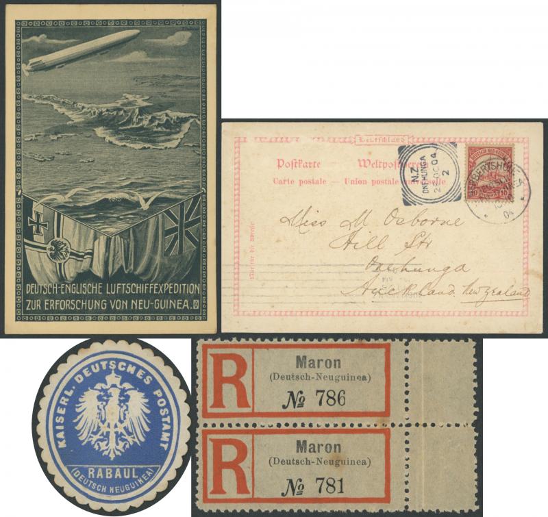 unused/CTO plus Stamped-to-Order 'Gruss aus New-Guinea' Eagles 10pf 'Deutsch/Newu-Guinea' overprint used to Germany, also 1904 'Duk Duk Dance' picture postcard to New Zealand with 10pf red tied 'HERBERTSHOHE' cds, 1914 Zeppelin airship expedition