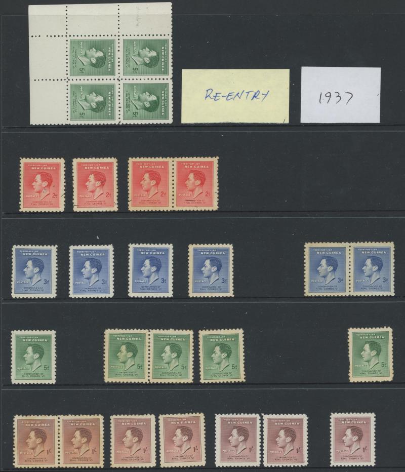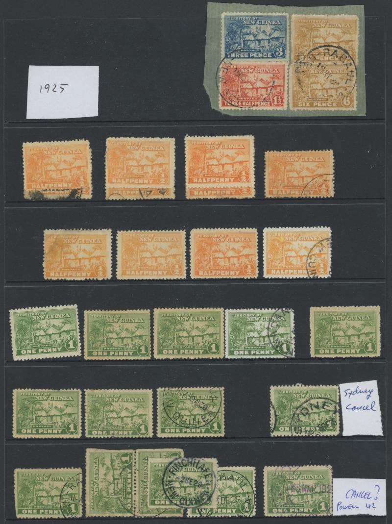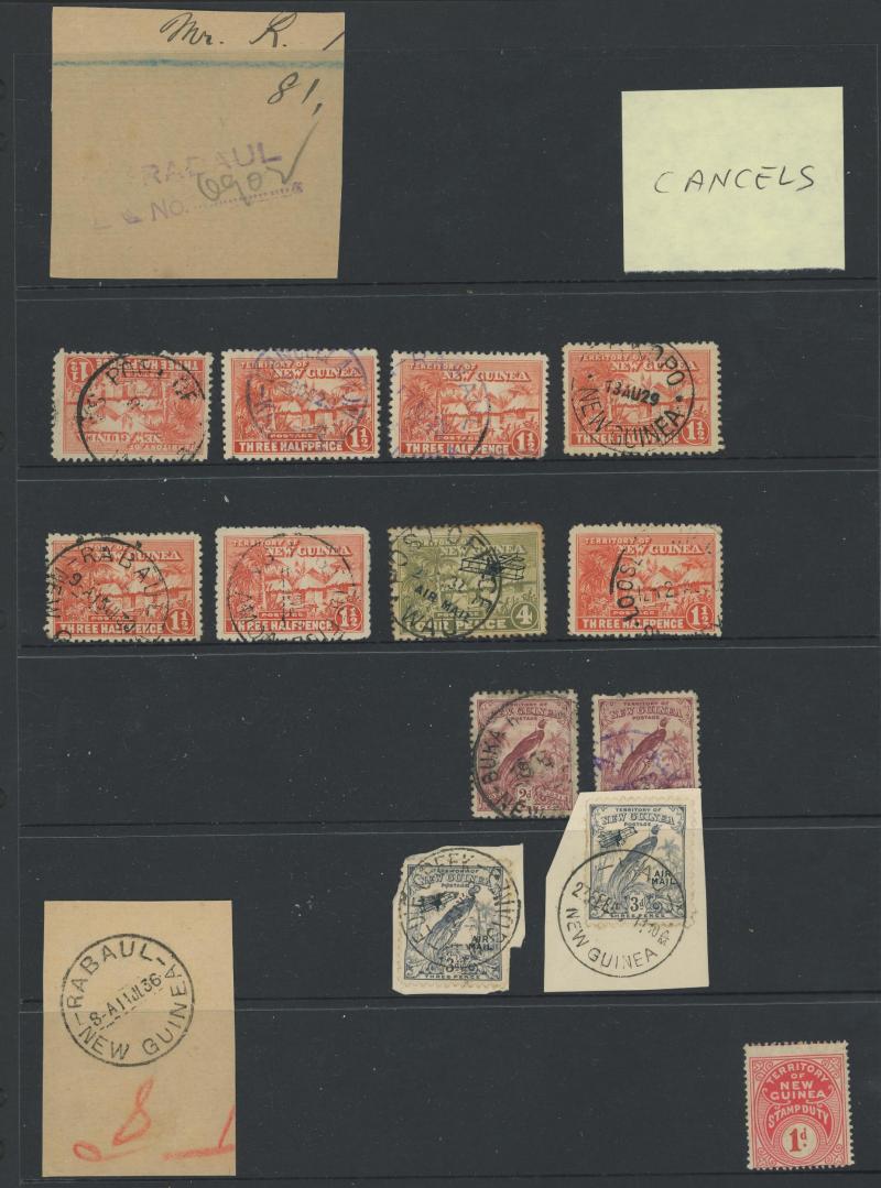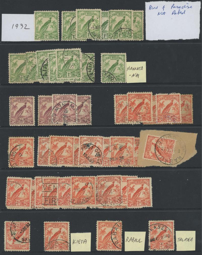 horizontal pair with largely very fine 'RADIO STATION/MANUS' triple-oval datestamp in violet and KGV Heads * including shades, then a quantity of Huts & Birds issues to 5/- mint & used including postmark interest, plus a couple of covers noted 1936