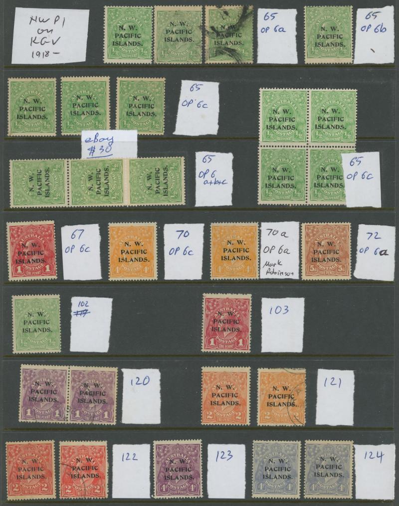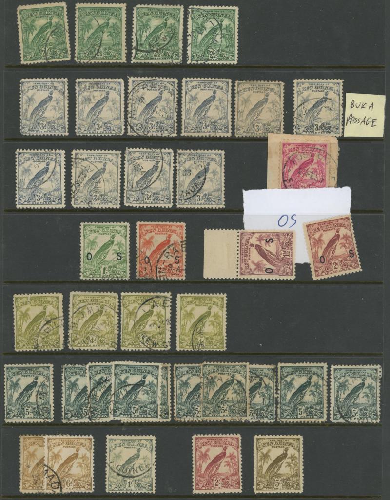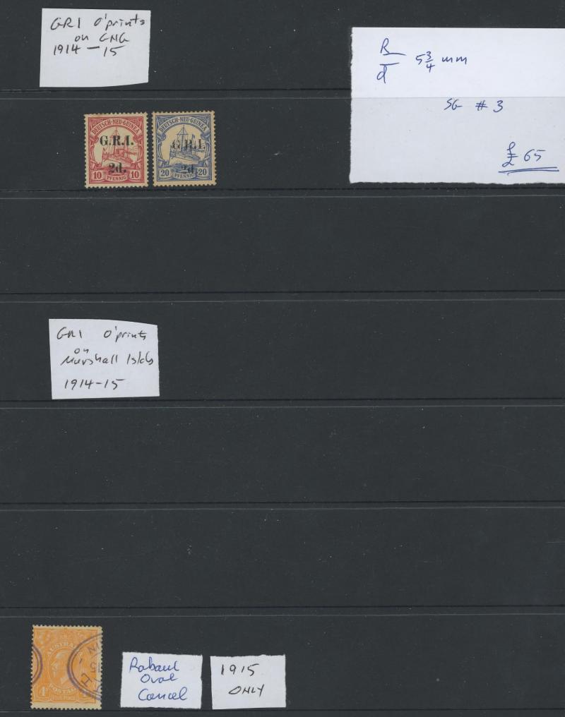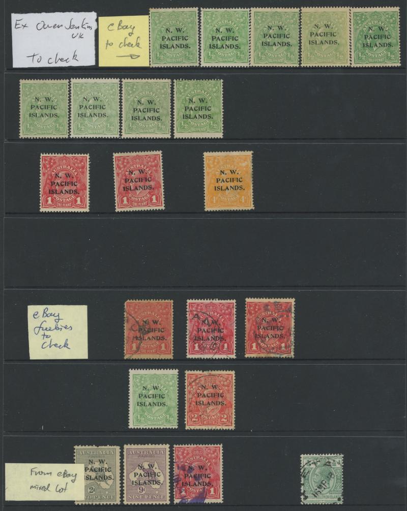 Accumulation including a couple of 'GRI' overprints on German New Guinea, a range of NWPI overprints with Kangaroos Second Wmk 9d