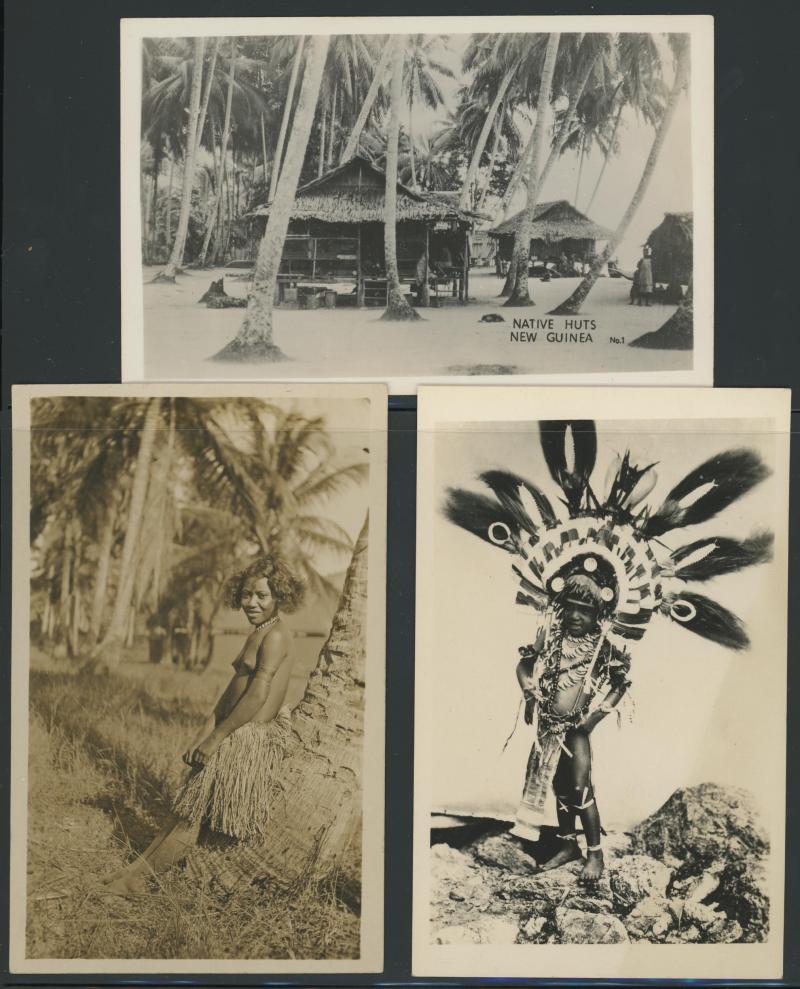 PICTURE POSTCARDS: Selection of New Guinea & Papua with a number of real photo cards including Native Children with Huts 1½d & 6d