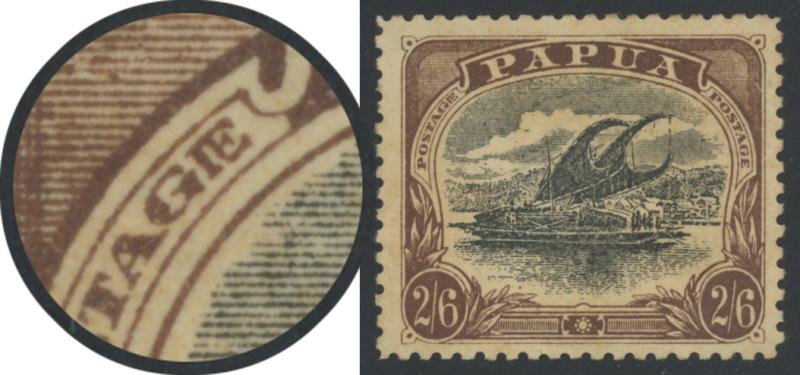 occurring with Comb Perforation, and states of the 2½d that "I have only seen this stamp overprinted either large or small Papua".