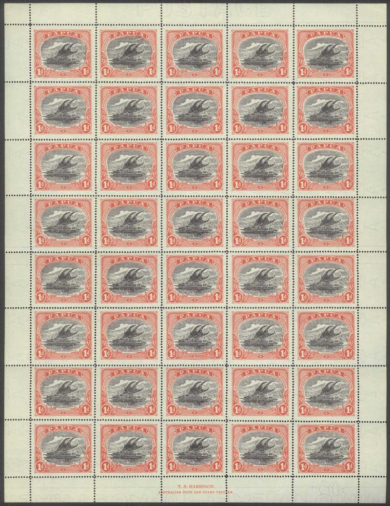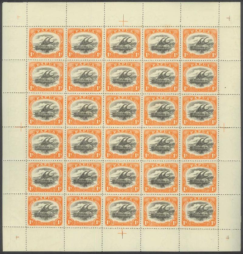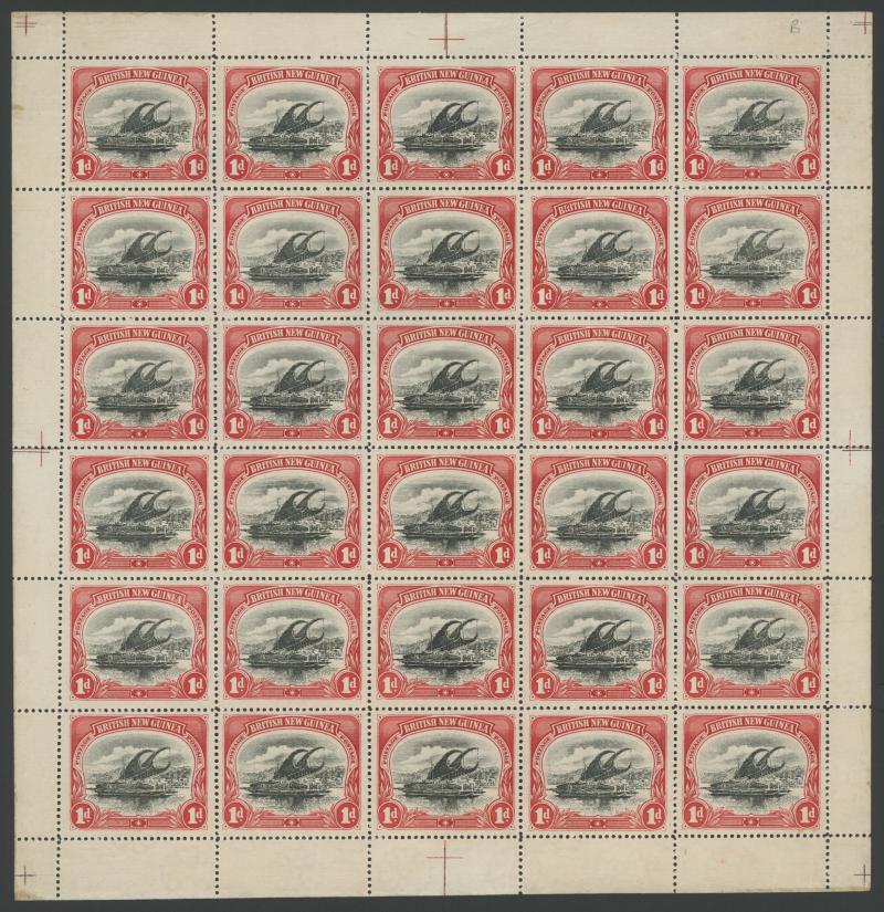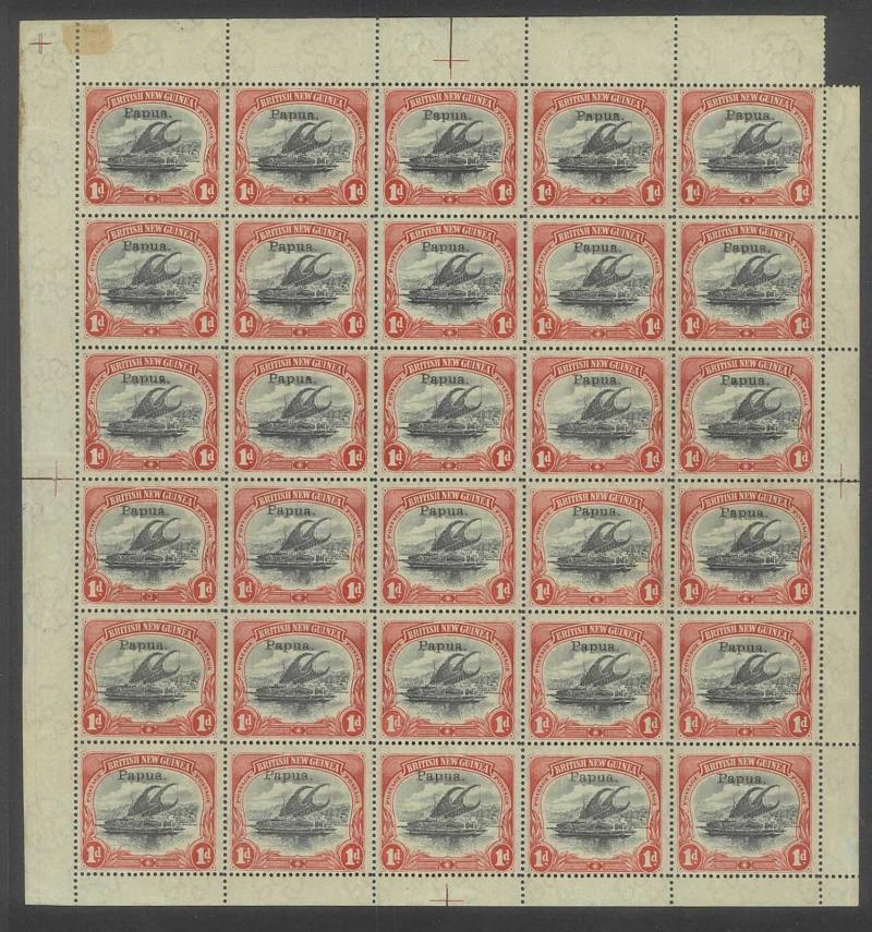 1907 Lakatois Small 'Papua.' Overprints Rosettes Watermark Vertical complete sheets of 30 (5x6) 1d black & red SG 39 x2 sheets and