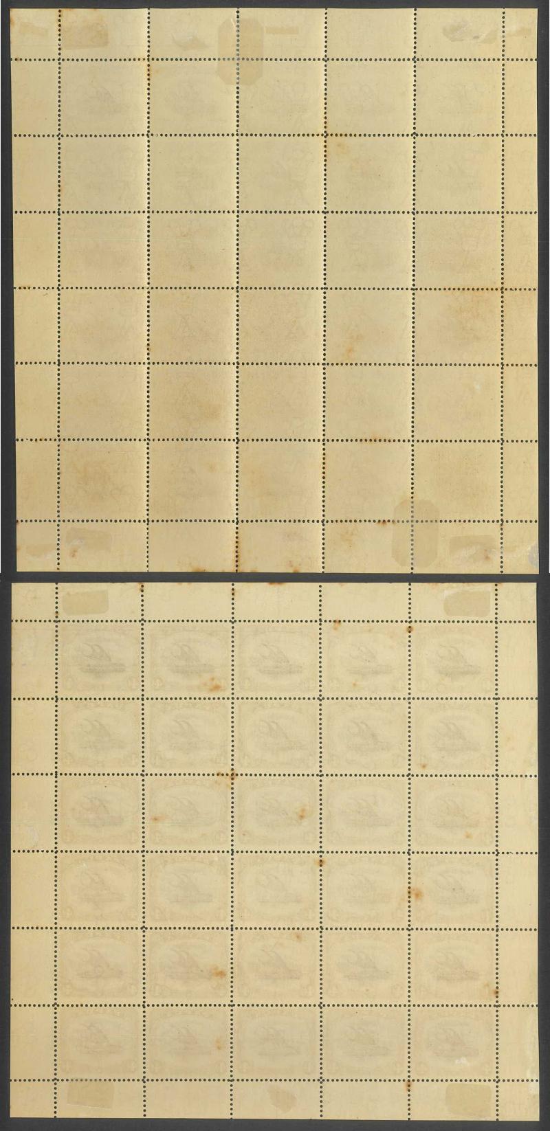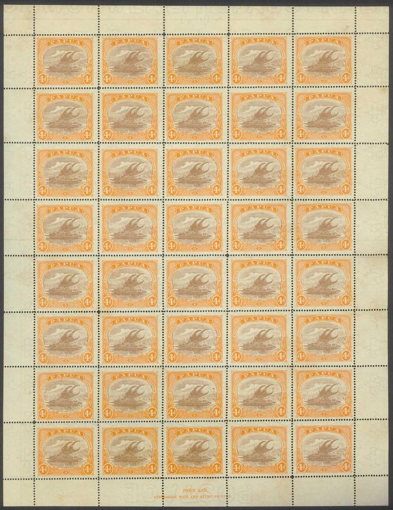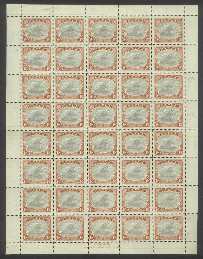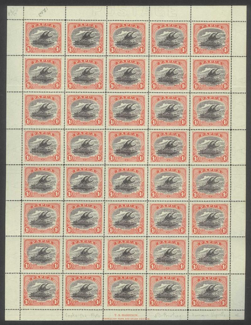 1907 Lakatois Small 'Papua.' Overprints Rosettes Watermark Vertical complete sheets of 30 (5x6) 1d black & red SG 39 x2 sheets and