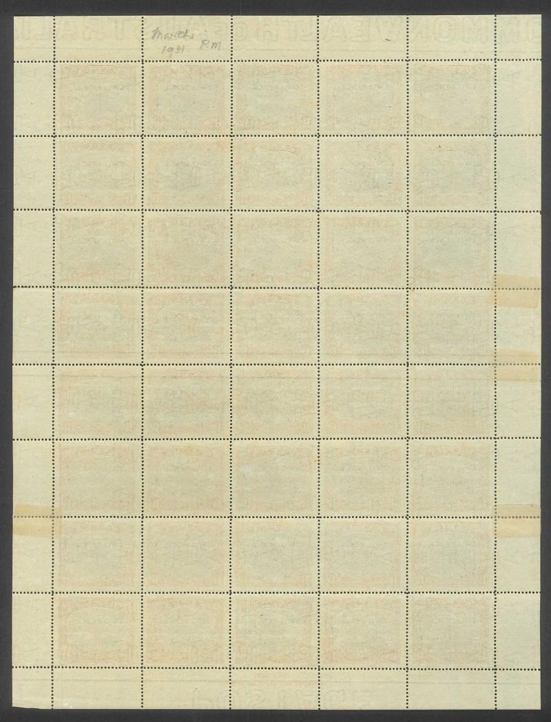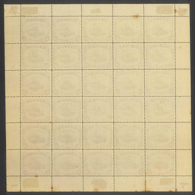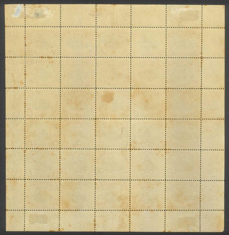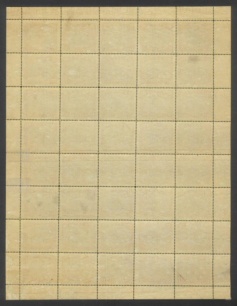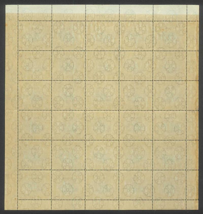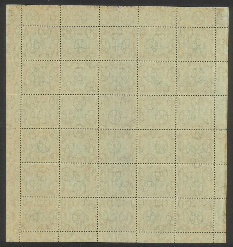 sheet of 30 (5x6) with Printers' Guideline Crosses in the margins and Thin 'd' at Left [Pos 17] SG 41b (Cat from £250), White Leaves at Right [Pos 20], Unshaded Leaves at Left [Pos 27] & Sickle Flaw [Pos 28] plus overprint varieties Inverted 'd' for