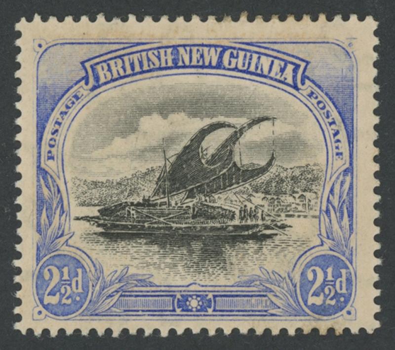 1901-05 British New Guinea Lakatois Rosettes Watermark Vertical Medium to Thick Paper Comb Perf 14 2½d black & ultramarine as SG 12