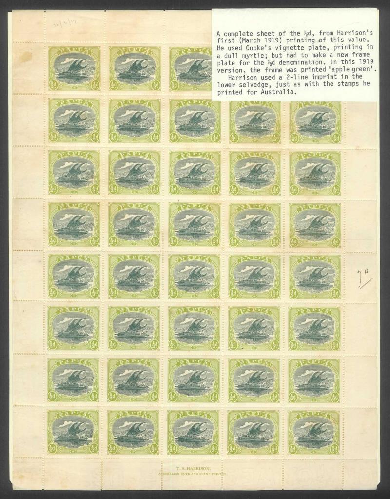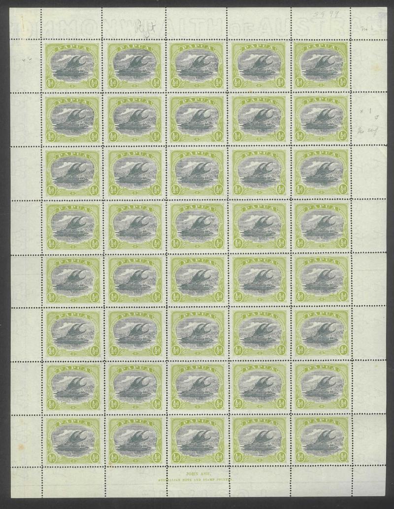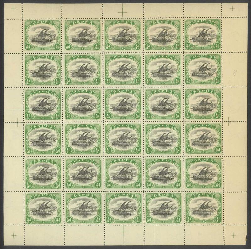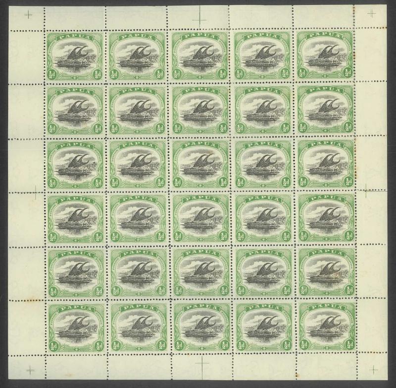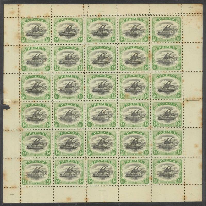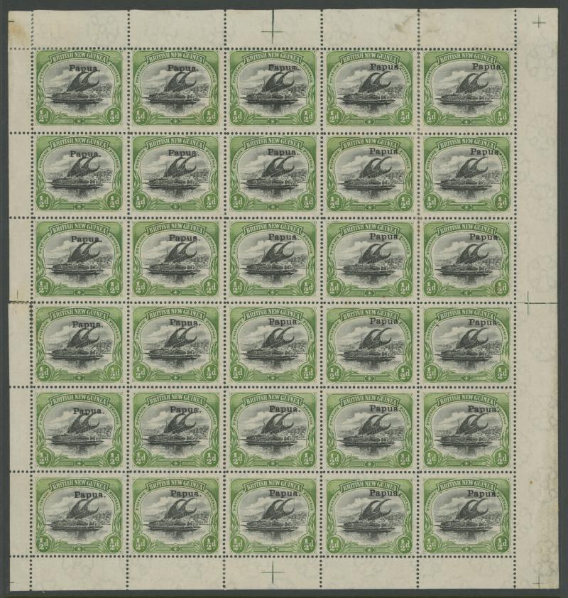 1907 Small 'Papua.' Overprints Rosettes Watermark Vertical Thin Paper Comb Perf 14 ½d black & yellow-green SG 38 complete sheet of