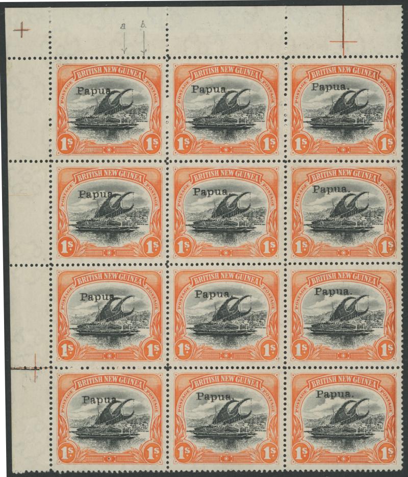 1907-10 Lakatois Small 'PAPUA' Lithographs Crown/Double-Lined 'A' Watermark Upright Perf 12½ 1/- black & orange SG 58 complete