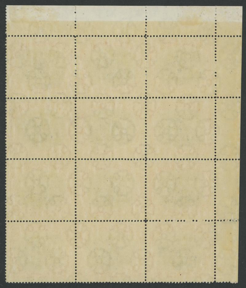 30 (5x6) with Printers' Guideline Crosses in the margins and White Leaves at Right [Pos 20] & Unshaded Leaves at Left [Pos 28] additionally with the Overprint Progressively Misplaced to Right on the right-hand two columns and the units in the