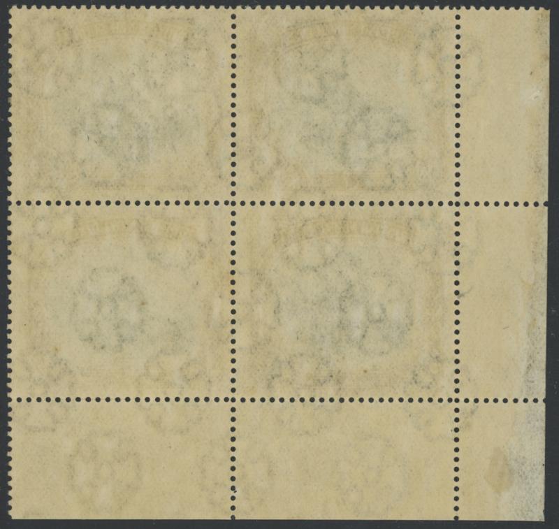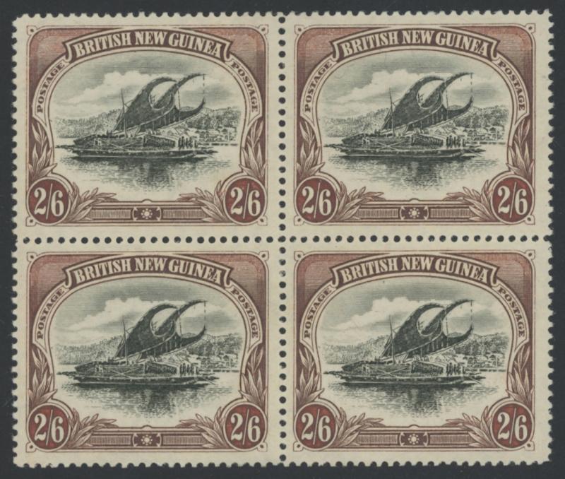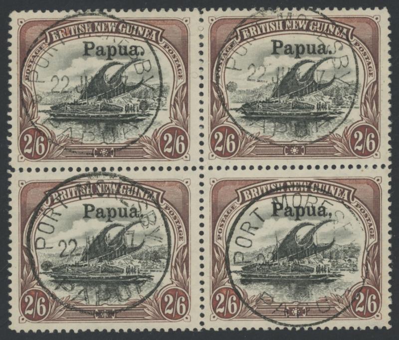 1906 Large 'Papua' Overprints Rosettes Watermark Horizontal Thick Paper 2/6d black & brown SG 20 block of 4, well-centred, four