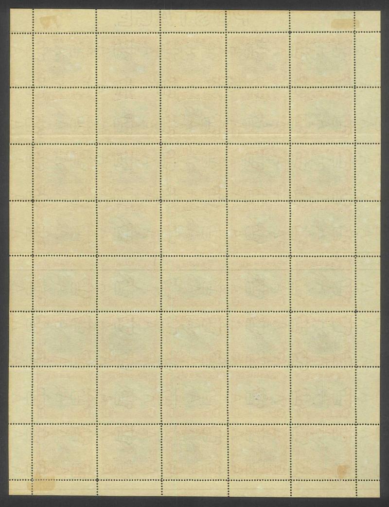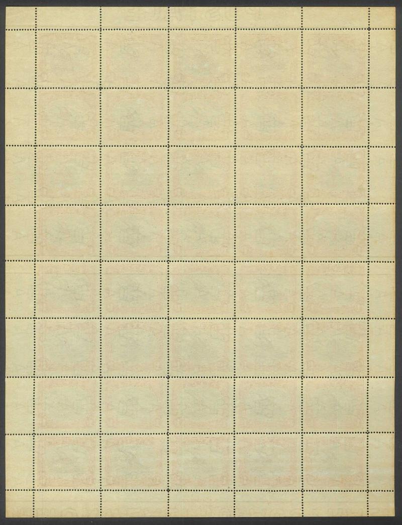 Guideline Crosses in the margins and Overprint varieties Inverted 'd' for Second 'p' [Pos 10, 16 & 21] and Dropped 'pua.' [Pos 17] as well as Overprint Guide Pinholes in Rosette [Pos 4 & 16], most units are well-centred, light diagonal crease at