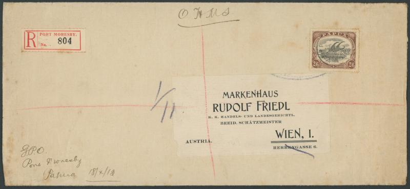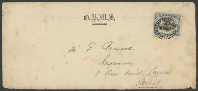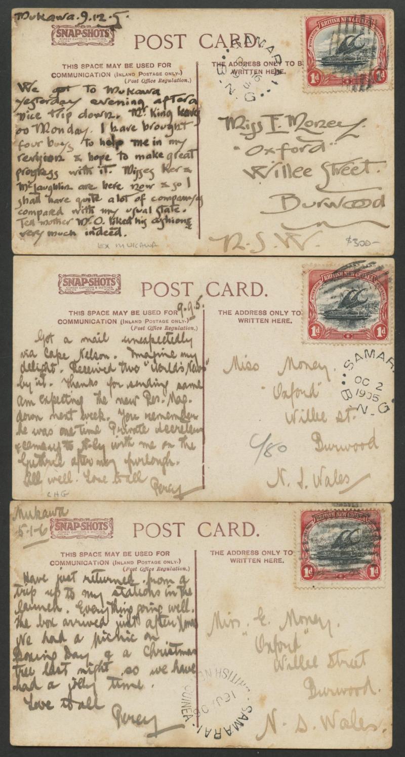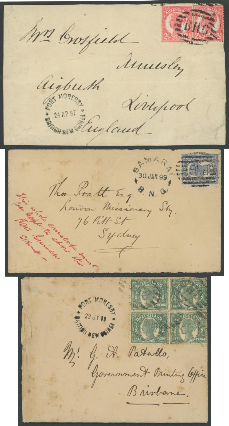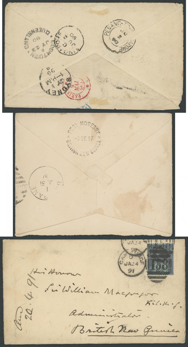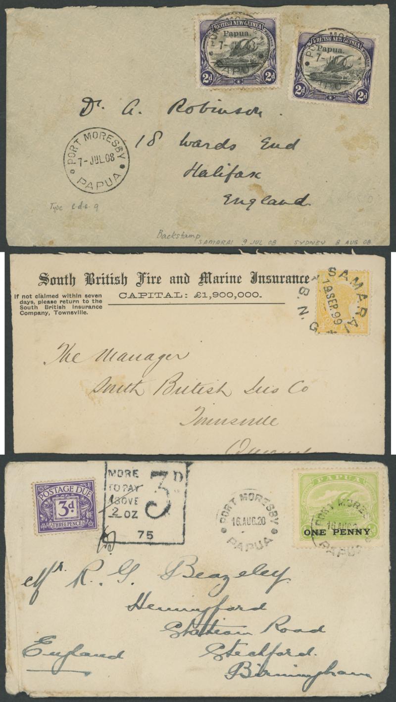 MORESBY/6SE97/BRITISH NEW GUINEA' backstamps, flap removed. A very early and desirable group.