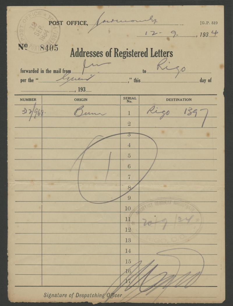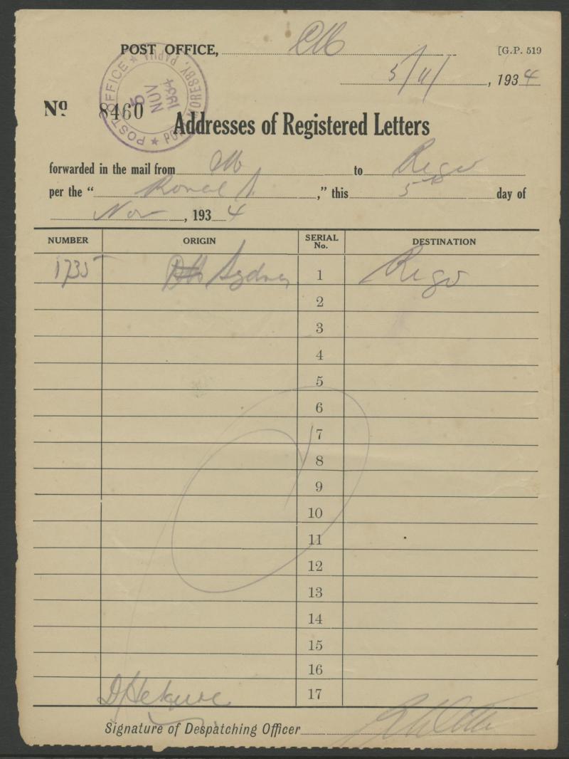 Group of Post Office forms comprising 'Addresses of Registered Letters' x3 (one a crude Army Postal Services type), 1932 black/blue