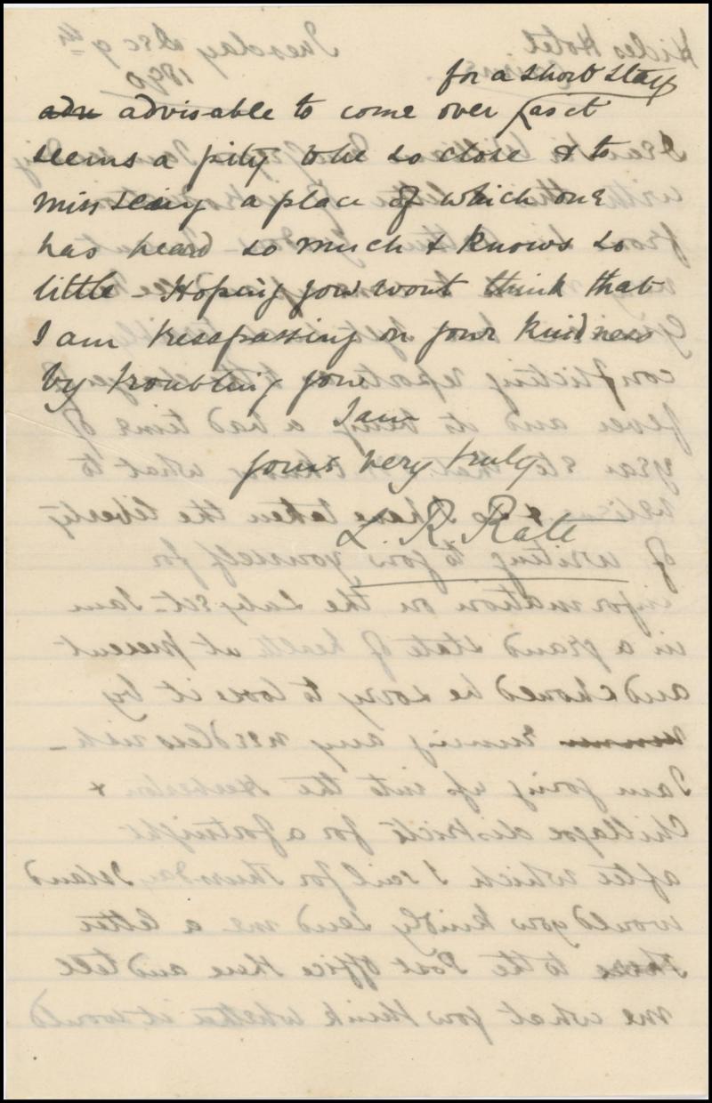 Archaeology/Cambridge' and signed "Anatole von Hugel", no envelope; 1890 (fault on the face) & 1891 covers from 'CAMBRIDGE - 158' apparently both in von Hugel's hand, the first with backstamps of 'PENANG TO SINGAPORE' mail sorter, 'SINGAPORE', Sydney