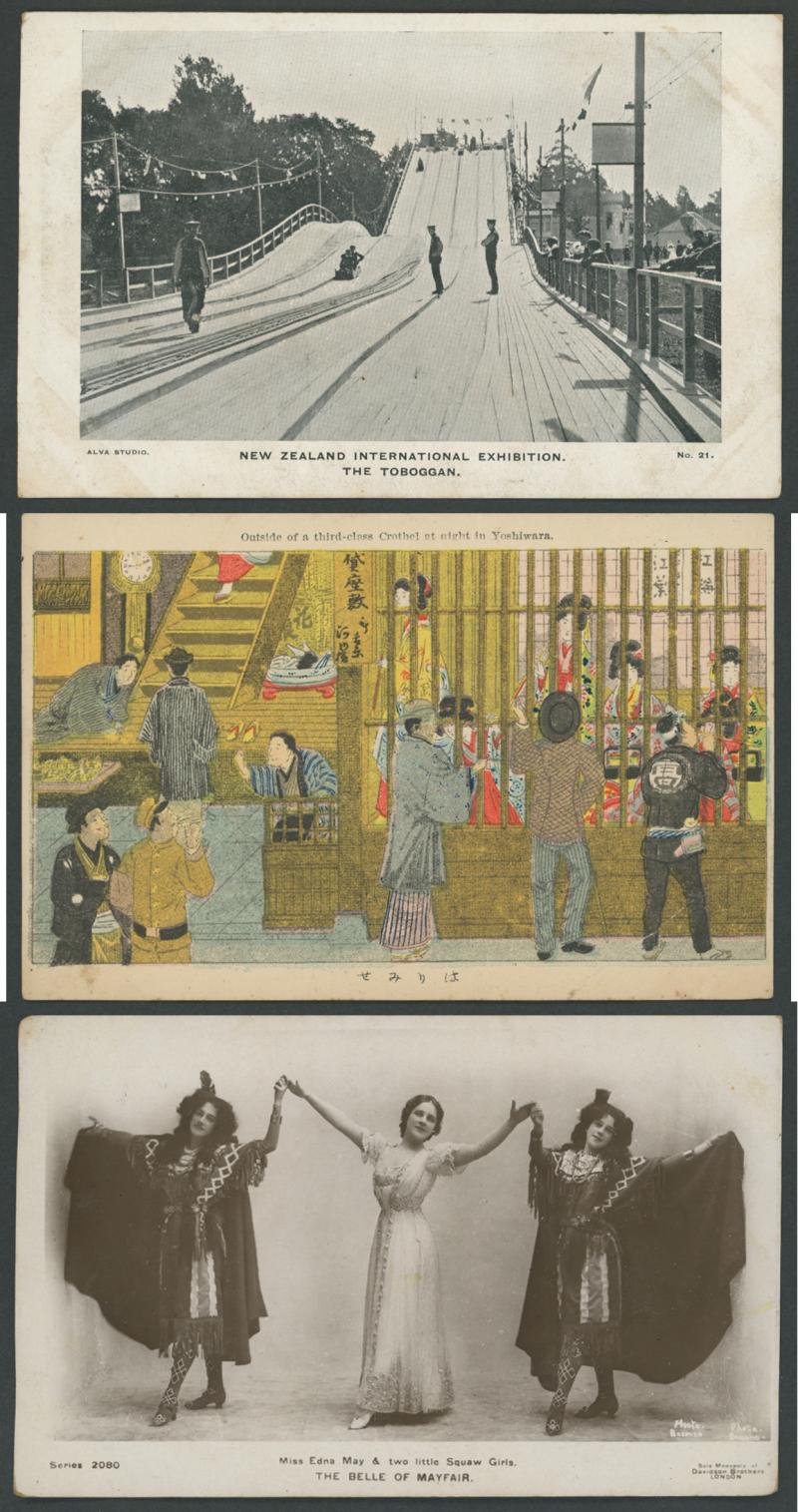 Island (GB), Durban South Africa, Japan, Egypt, also New Zealand including several Maori subjects & 1906 Christchurch Exhibition x8, many British Actresses & other Glamour subjects, Geishas group & 'Outside a third-class Crothel' [sic], humour