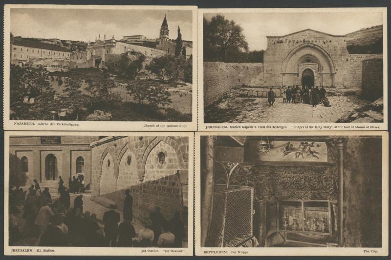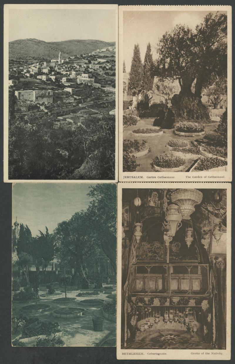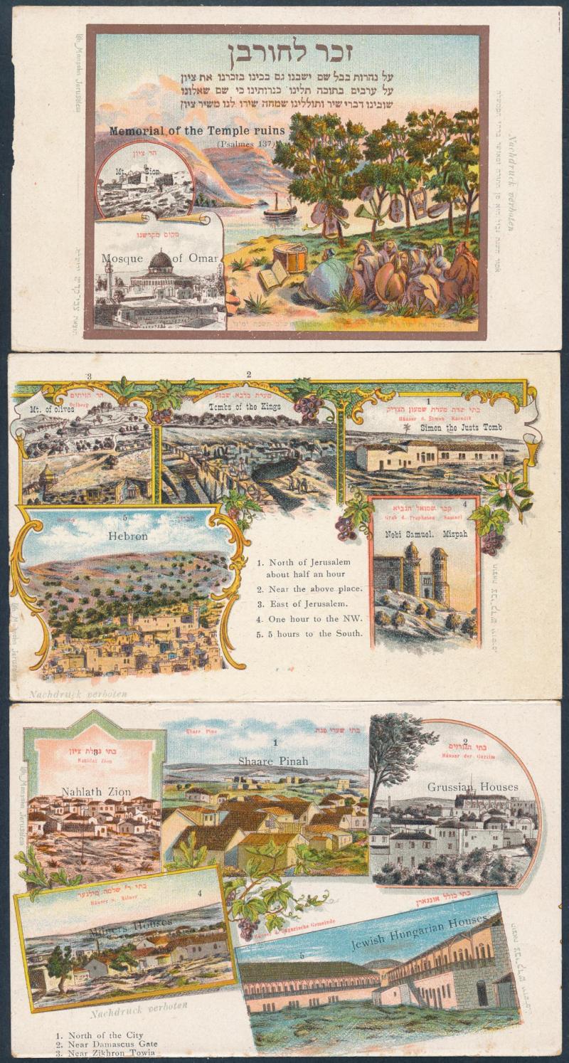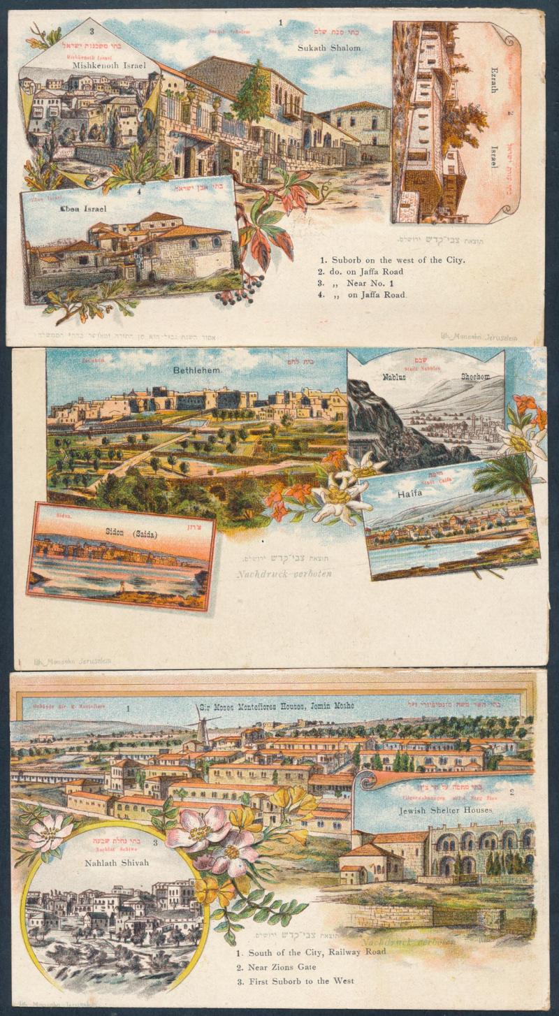 HOLY LAND/PALESTINE: circa 1900 Monsohn Litho (Jerusalem) Undivided Back chromolithographs each with 3 to 5 vignettes and one with