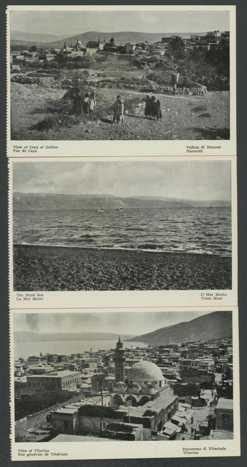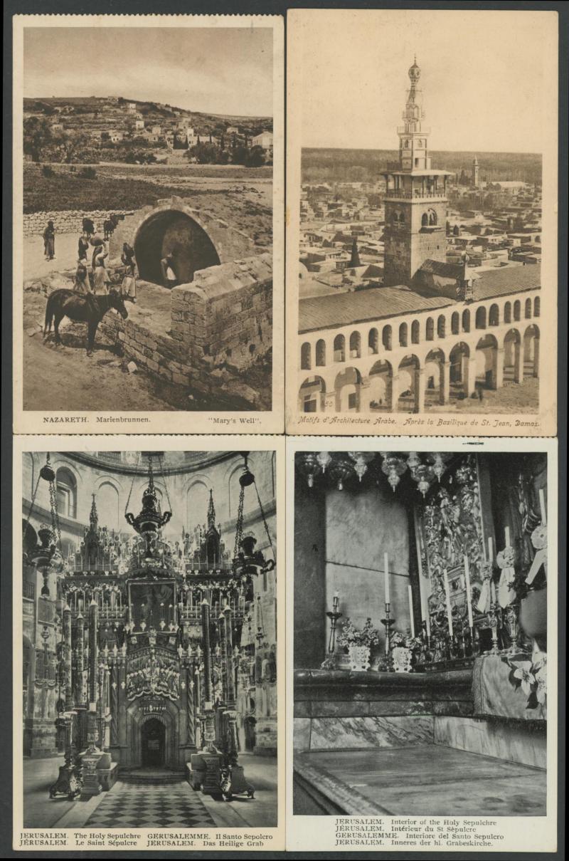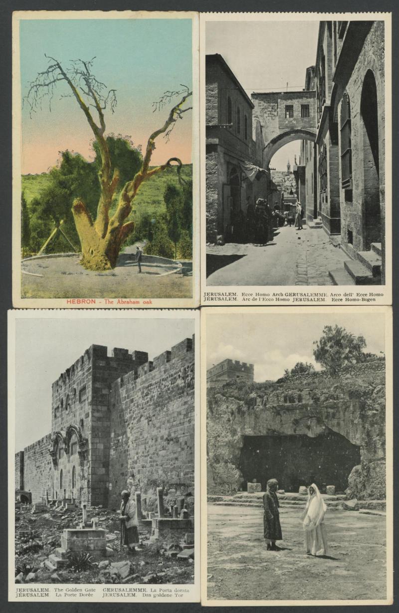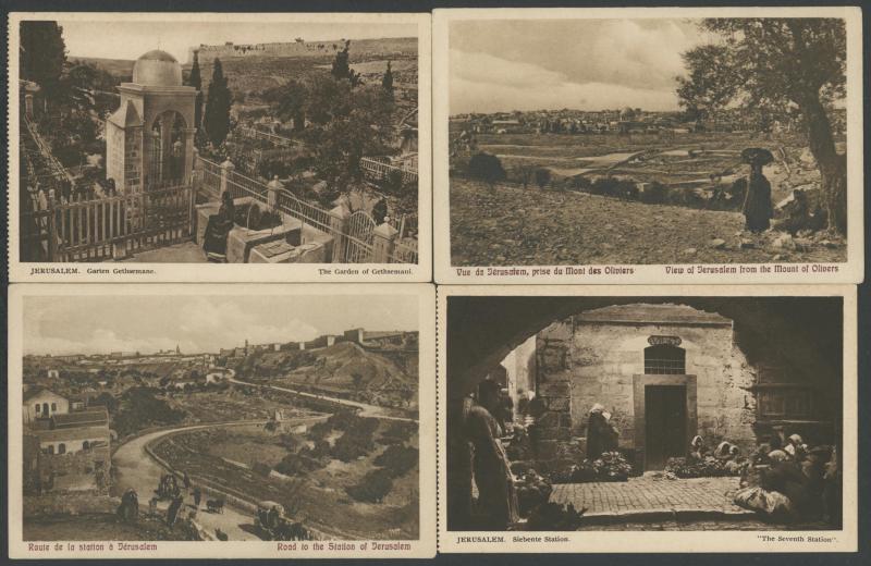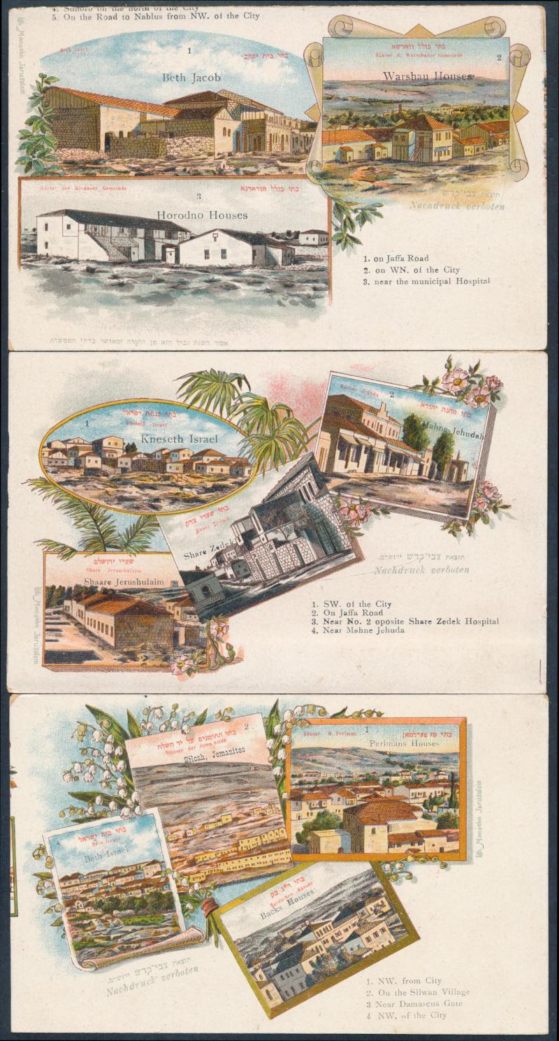 HOLY LAND/PALESTINE: circa 1900 Monsohn Litho (Jerusalem) Undivided Back chromolithographs each with 3 to 5 vignettes and one with