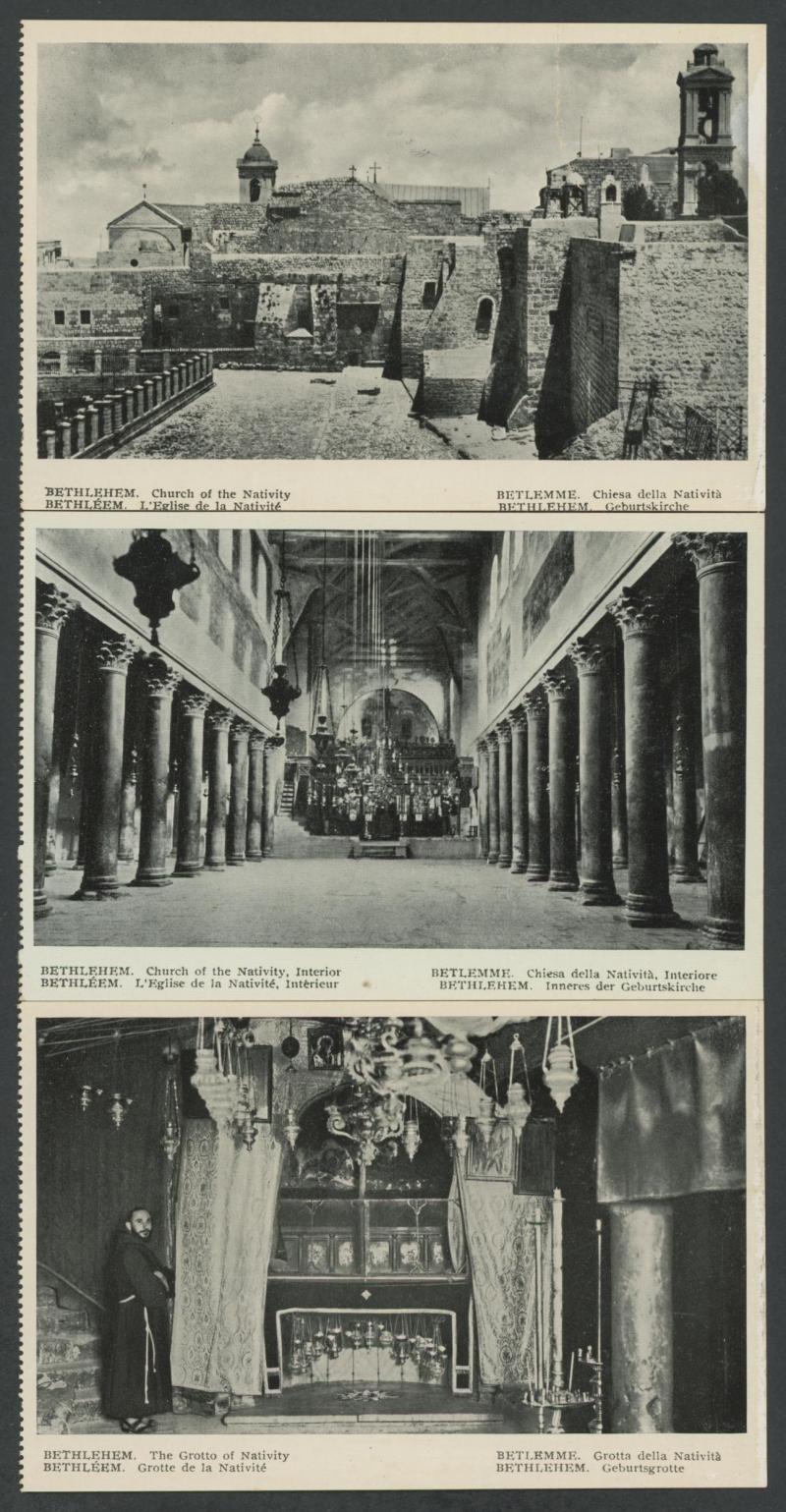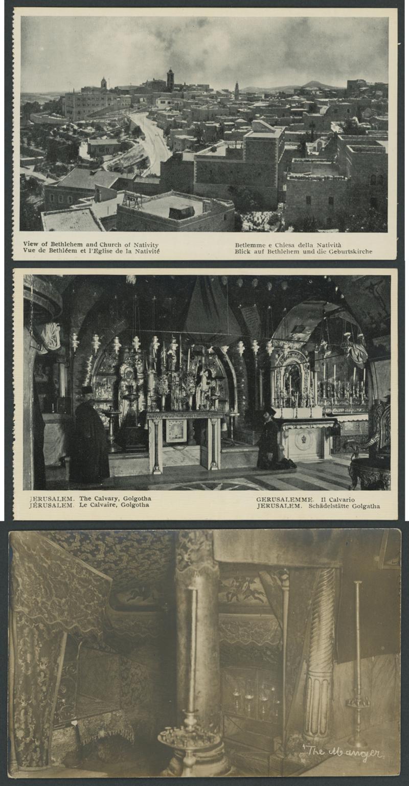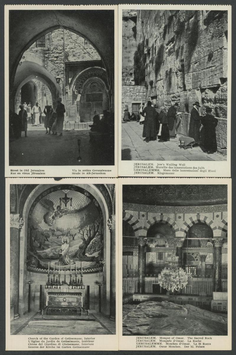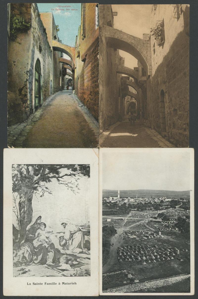 HOLY LAND/PALESTINE: circa 1900 Monsohn Litho (Jerusalem) Undivided Back chromolithographs each with 3 to 5 vignettes and one with