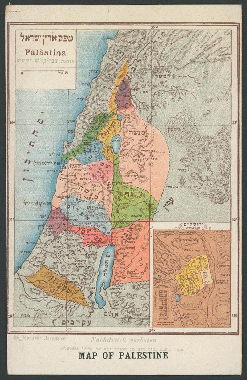 a map, multi-language captions remarkably with prominent Hebrew inscriptions, fine to very fine unused. Beautiful cards.