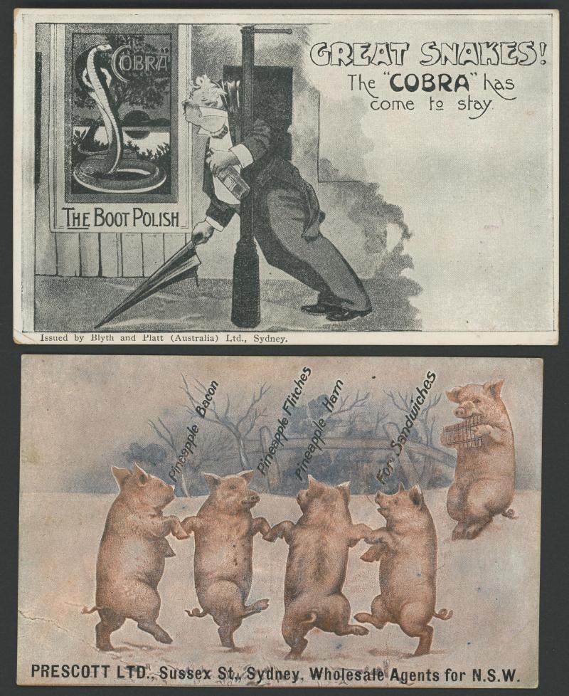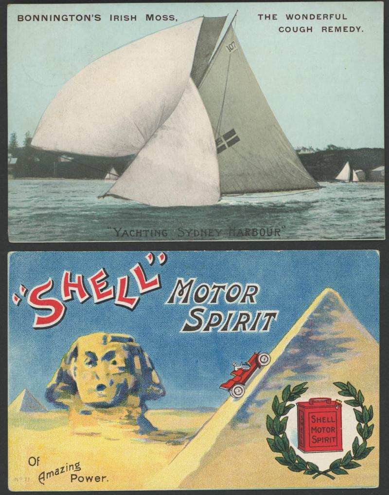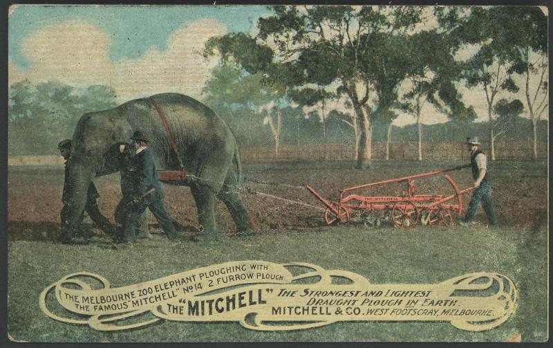 ADVERTISING: Australian & English group comprising a Niven for Mitchell Draught Ploughs (elephant pulling a plough!), Shell Motor