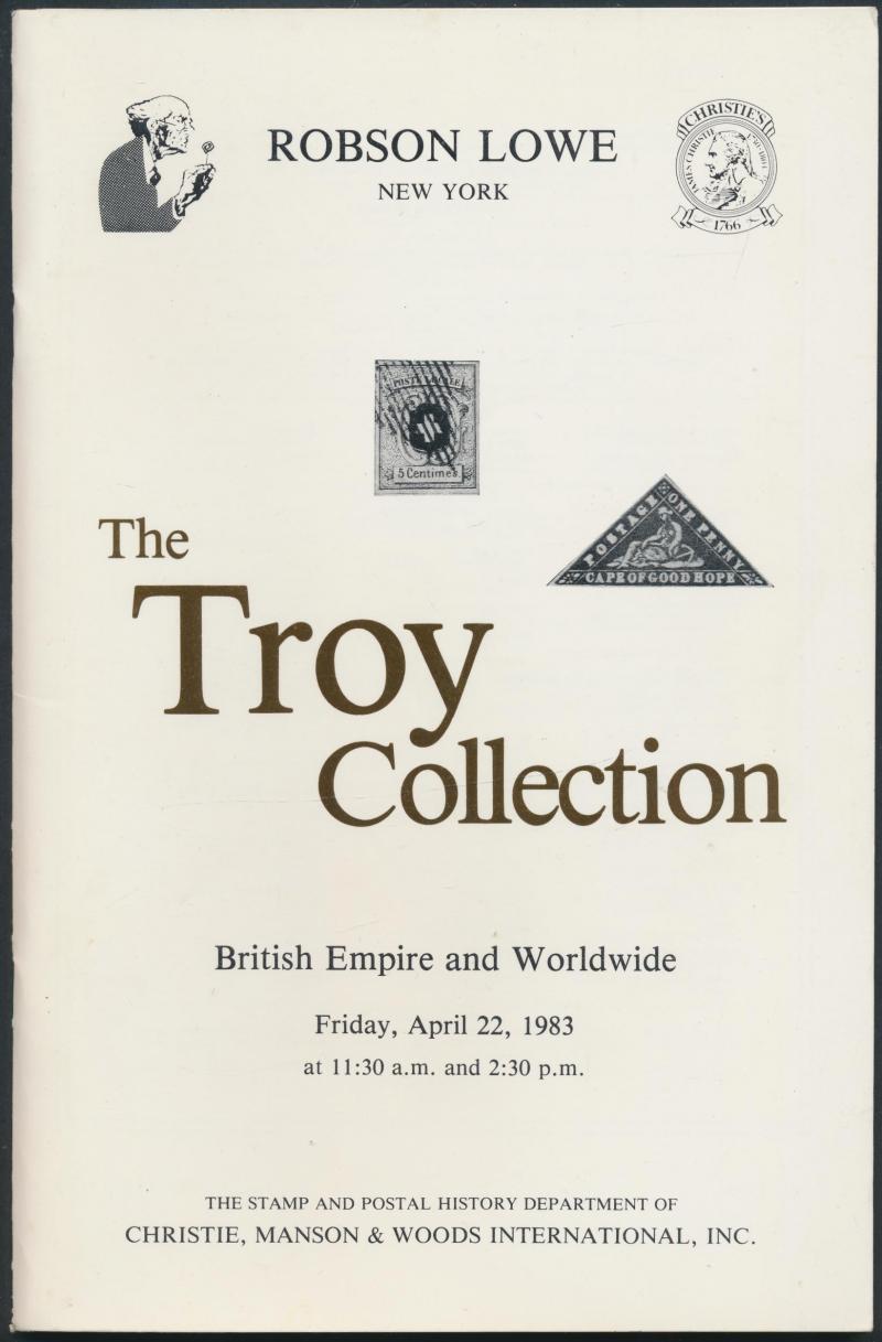 British Empire auction catalogues including 'Urwick Jamaica' (1957), 'Troy British Empire and Worldwide' (1983), 'Crocker