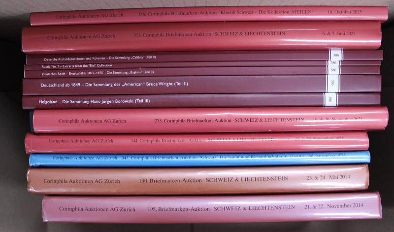 Corinphila and Köhler 2020s auction catalogues including Switzerland, Liechtenstein, German Colonies, Heligoland and more; most h/b