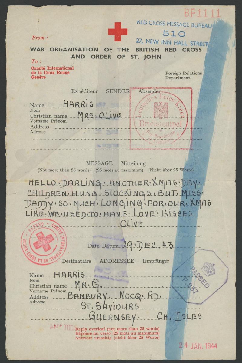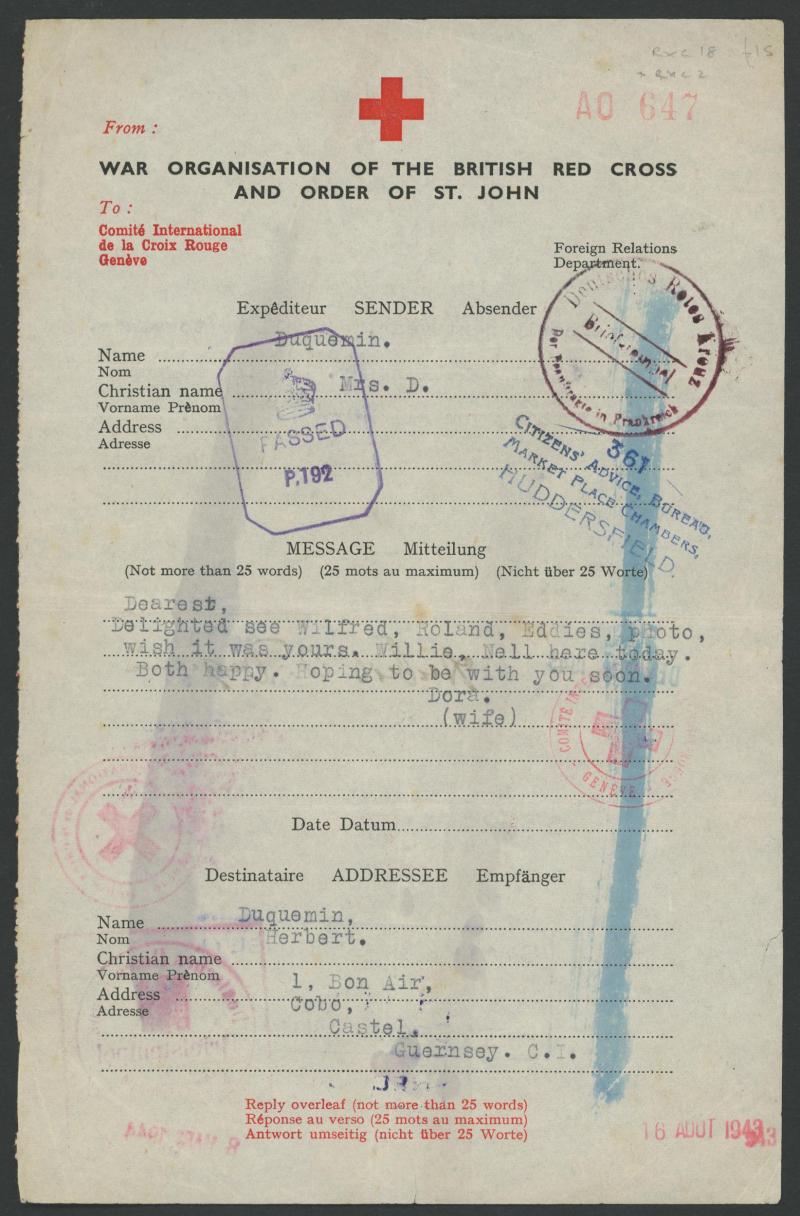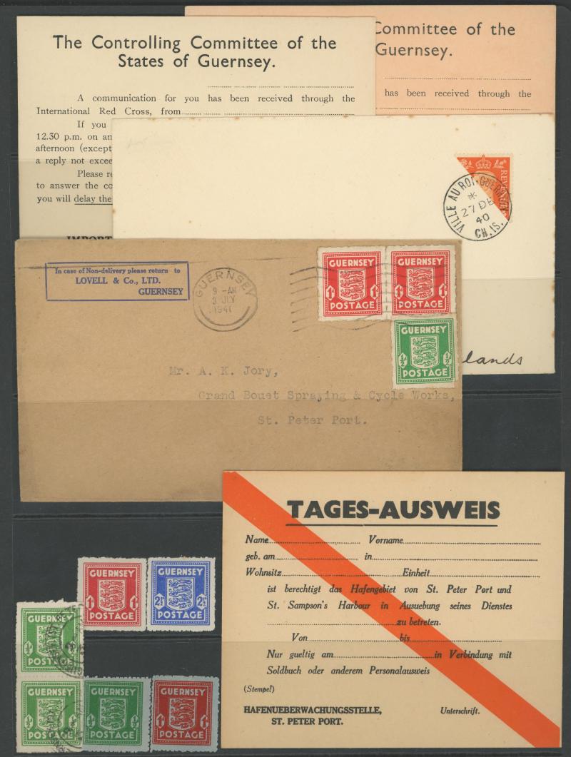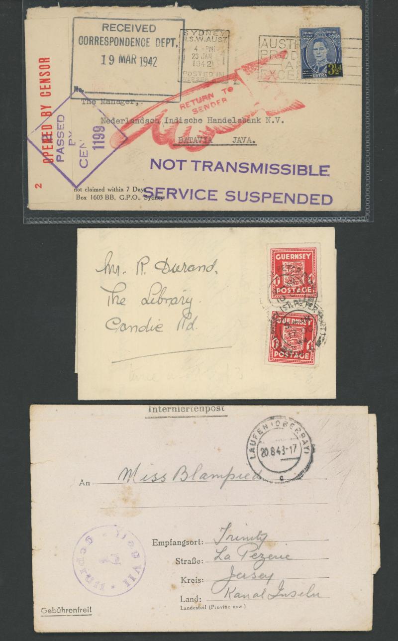 folder; Channel Islands WWII selection including British POW lettersheet from Germany to Jersey, two Red Cross enquiry forms & 1944 Guernsey entire lettersheet used locally; Australia 1942 to Java with magnificent 'NON-TRANSMISSIBLE/...' cachet; 1945