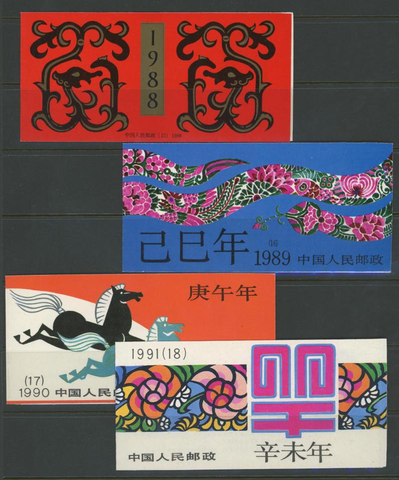 Odd lot with China booklets 1983 Swans & Warriors and 1986-91 New Year issues; Macau 'An Expression in Stamps' album & 1987 year