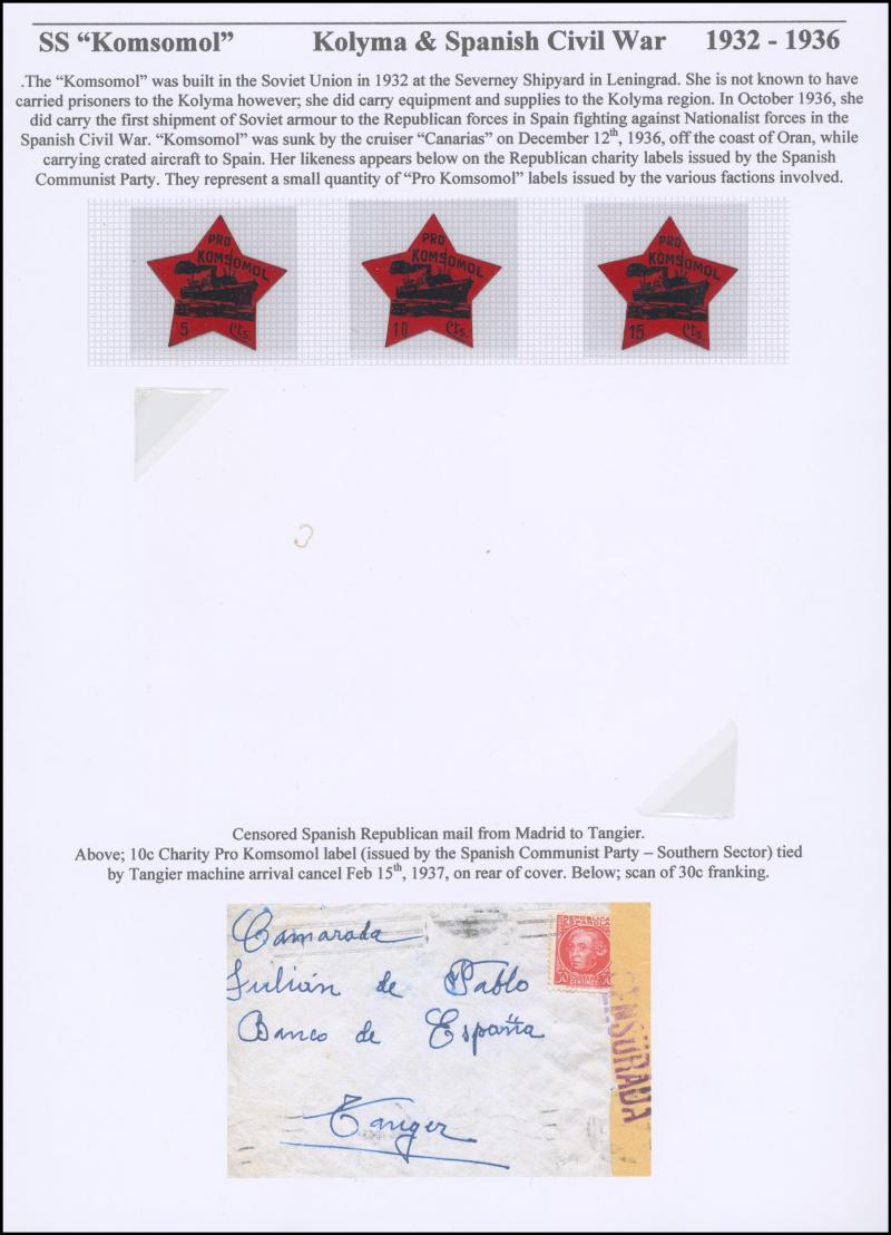 four telegrams re a released POW; Spain 1937 civil war cover with 'KOMOMOL' poster stamp on the reverse; and a few others. (Image1) (Image2)