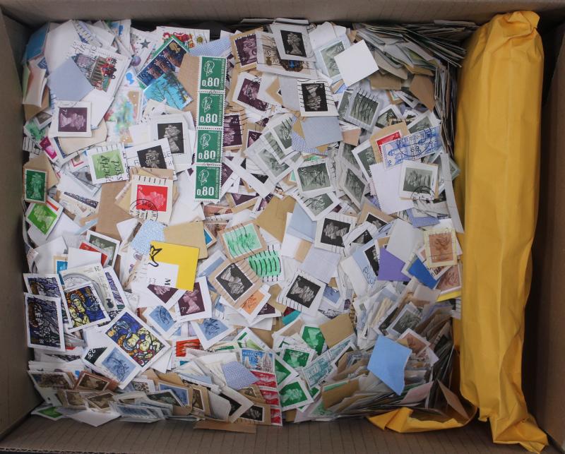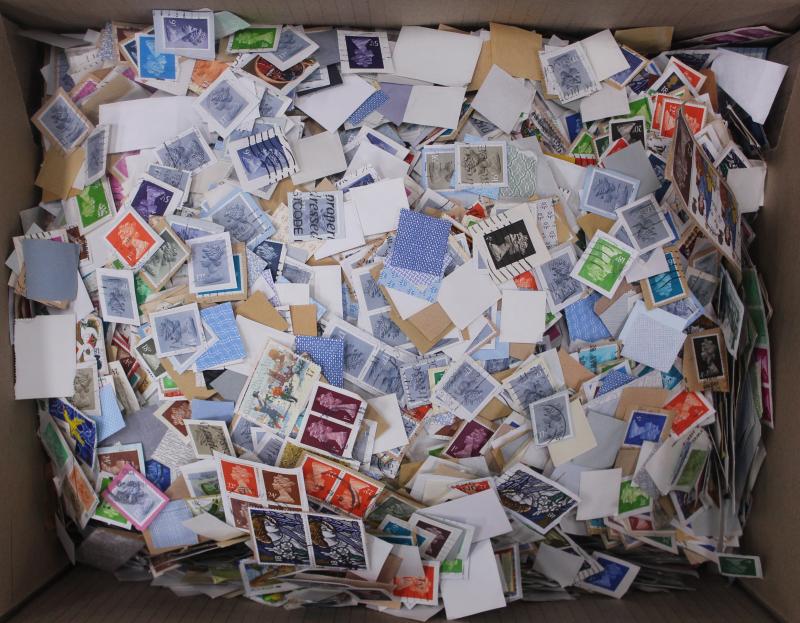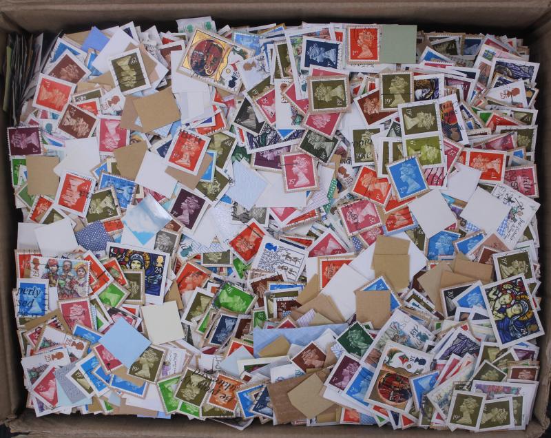 World kiloware on paper, mostly Great Britain with a high percentage of Machin issues. Weighs 63kg.