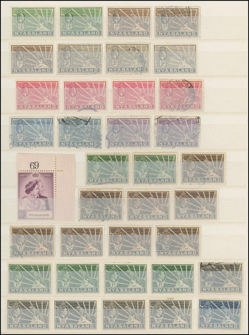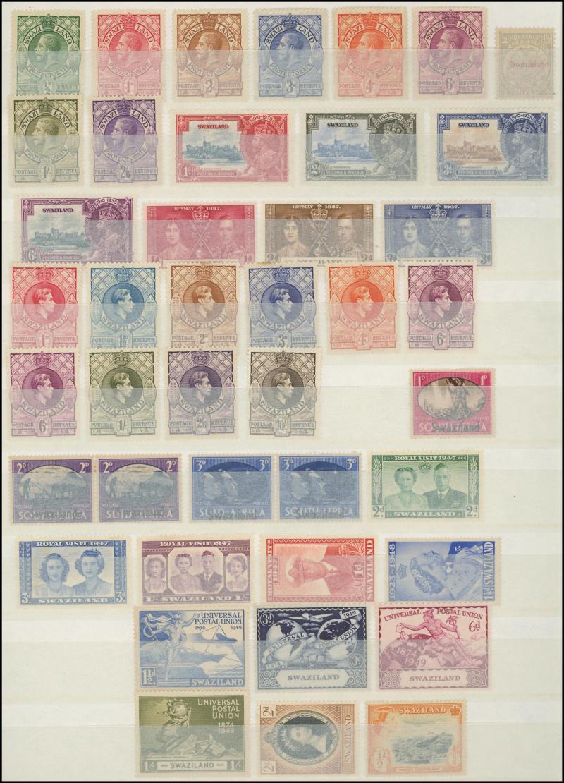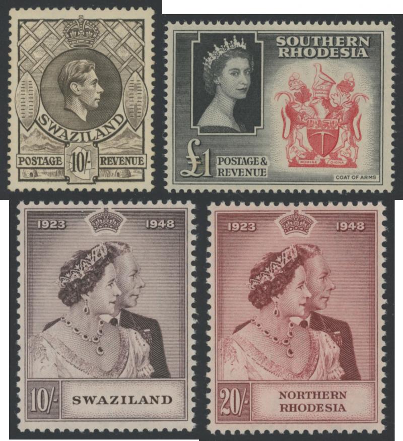 Swaziland noted 1948 10/- Royal Silver Wedding *, Southern & Northern Rhodesia noted 1948 20/- Royal Wedding *, Zimbabwe, Botswana, Namibia, South West Africa, Mozambique, Nyasaland, etc, high thematic content, condition variable, inspection