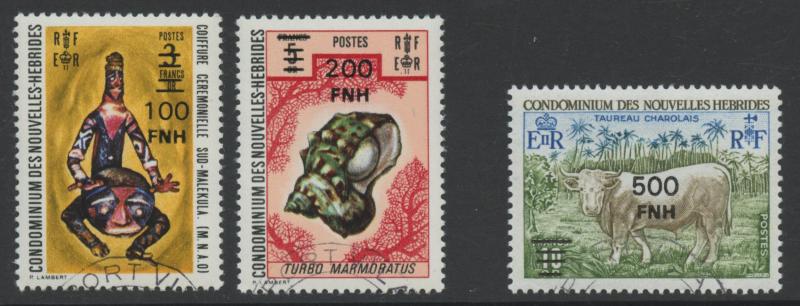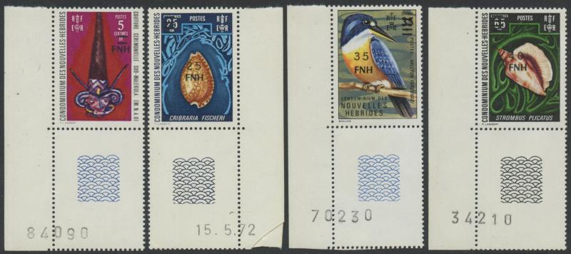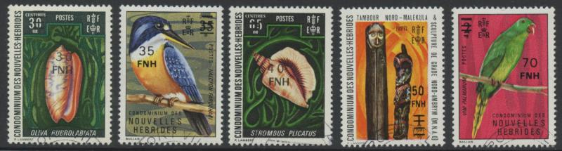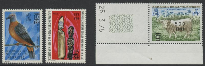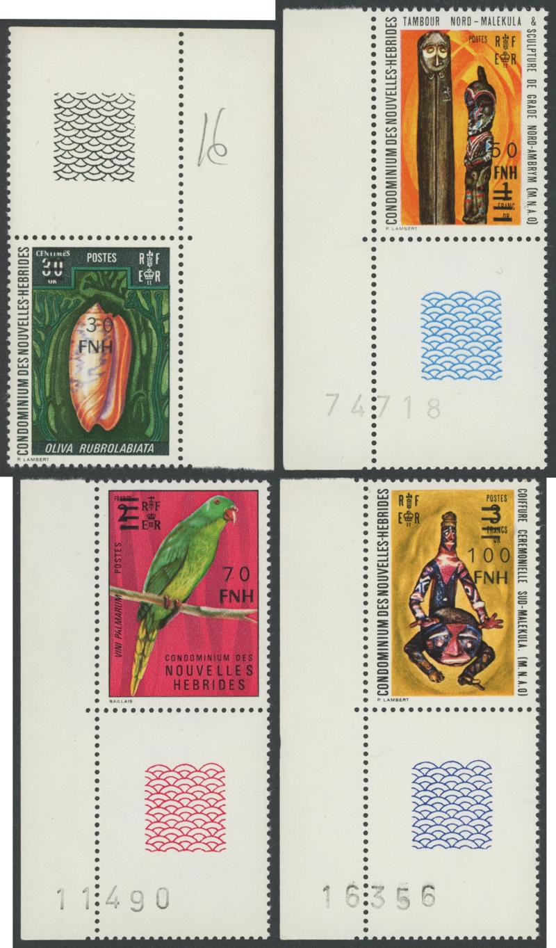 NEW HEBRIDES: 1977 New Currency Provisional Surcharges Vila Overprints 5fr on 5c to 500fr on 10fr SG F247-255 plus the unissued