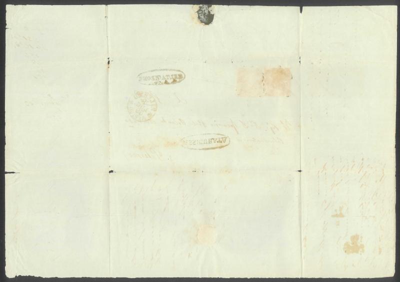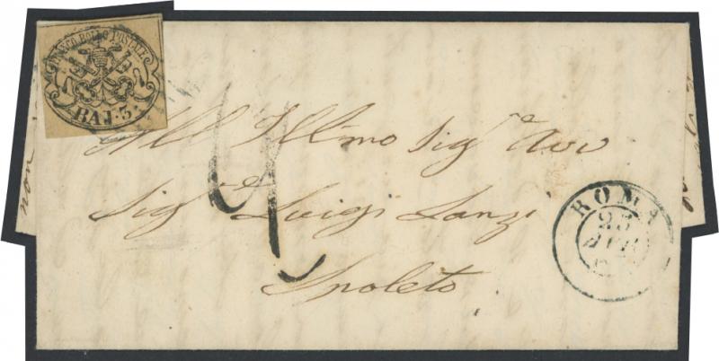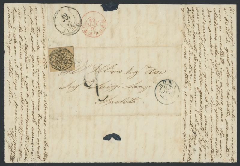 PAPAL STATES: 1863 part-entire with 3b (full margins) tied by light diamond-of-bars cancel of 'ROMA/23/APR/63' (cds at