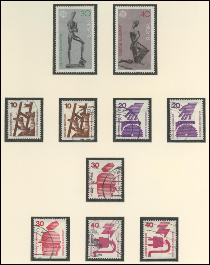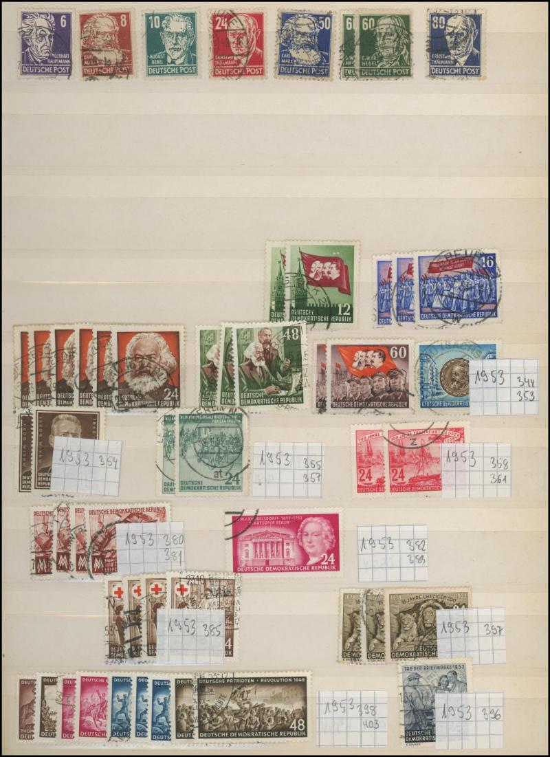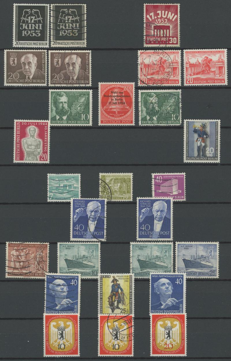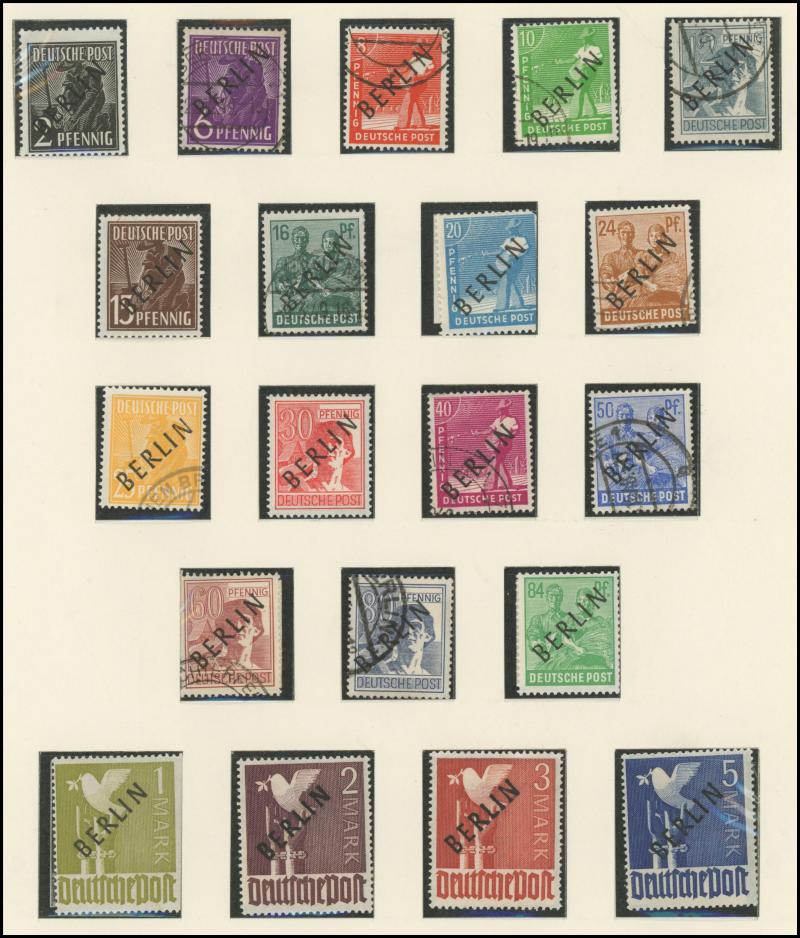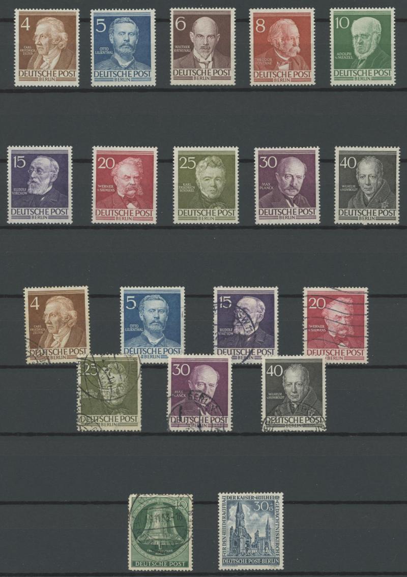 Federal Republic, noted UPU 75th Anniversary 30pf ultramarine used, good pickings in Berlin noted 1952-53 Famous Berliners set ** and used, German Democratic Republic, plus First Day of Issue cards, private perfins, M/Ss, some postal stationery,