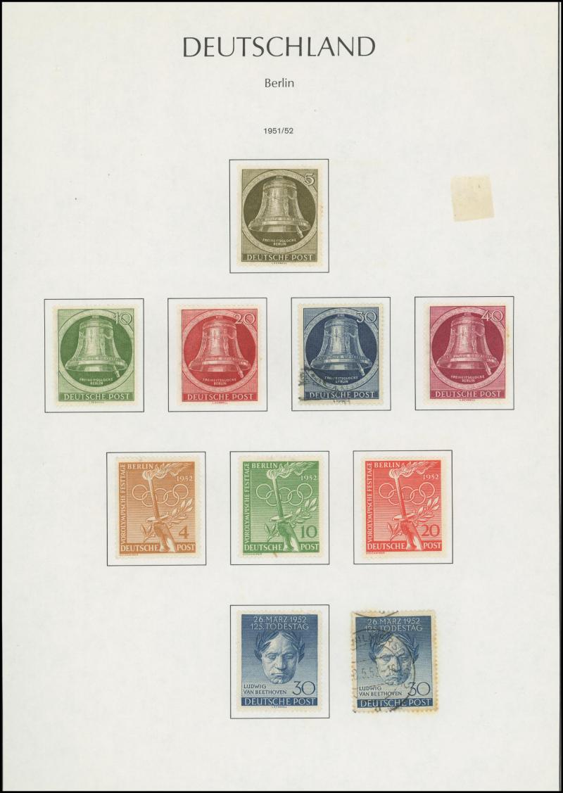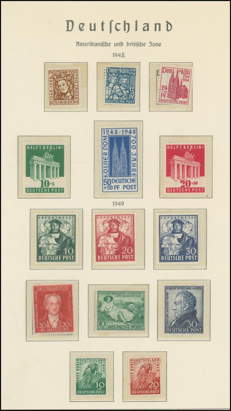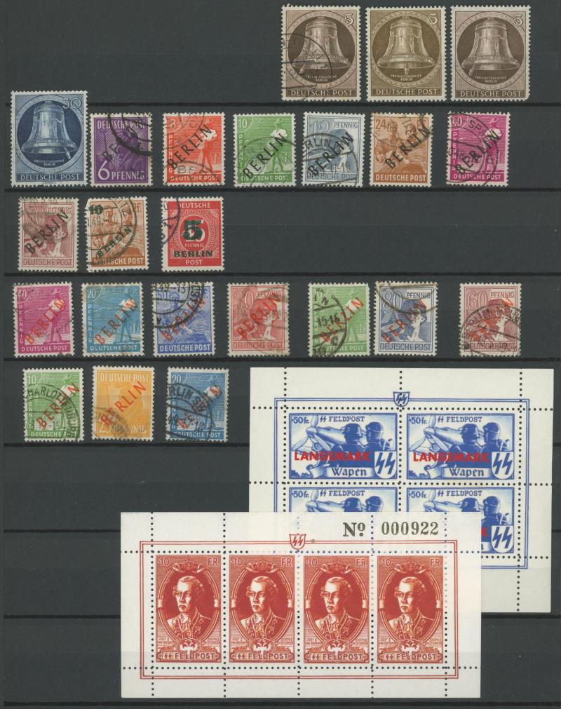 Germany noted 1949 Stamp Centenary used (aging), 1949 Relief used, Berlin noted 1949 Relief set * (aging), 1951-53 Bells complete (aging), Allied Zones noted 1946 Numerals M/S **, 1949 Hannover Fair set and M/S *, also Third Reich through to modern
